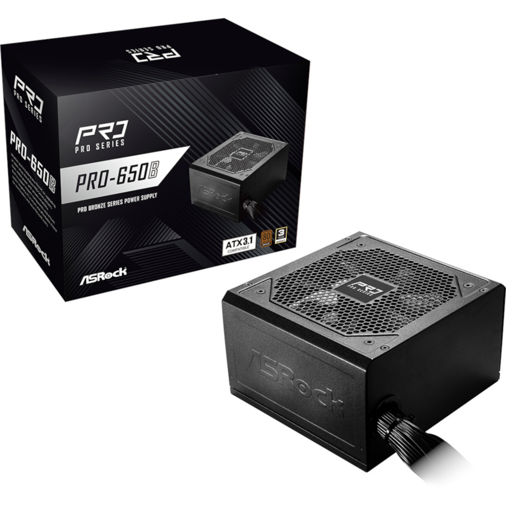 Блок живлення ASRock (PRO-650B) Блок живлення 650W, 80 Pluse BRONZE, ATX 3.1, 120m m Fan PRO-650B