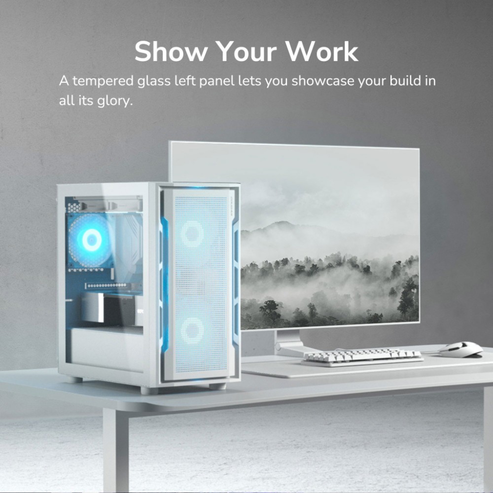 Геймерські, Minitower, Micro - ATX, Mini - ITX, Слотів розширення - 4, Вентилятори - 2 х 140 мм, 1 х 120 мм, Додатково - Top 2x12/14 см, GPU - до 340 мм, CPU - 160 мм, PSU - 160 мм, кулери з підсвічуванням, на передній панелі, на задній панелі, 210 x 422 x 390 мм, 5.95 кг, білий