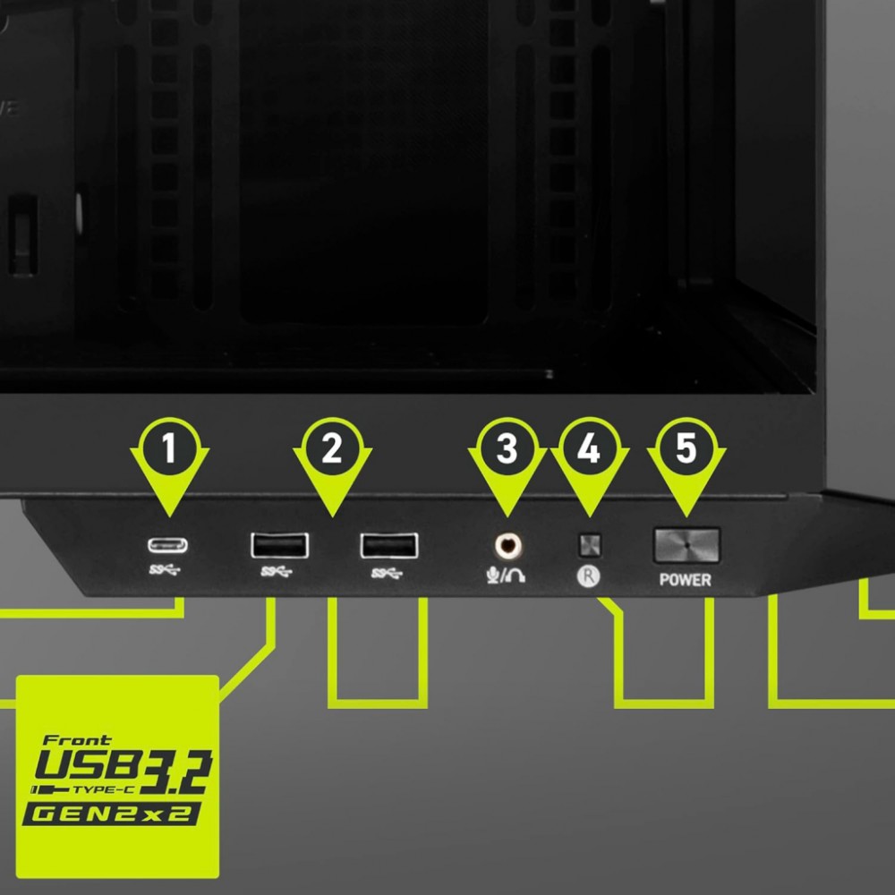 Корпус має всі необхідні роз'єми і інтерфейси, такі як USB, мікрофон і аудіо-роз'єм. Гарна циркуляція повітря забезпечується вентиляційними отворами бічний і задньої панелей. Корпус поставляється з уже встановленим блоком живлення на 300 Вт.