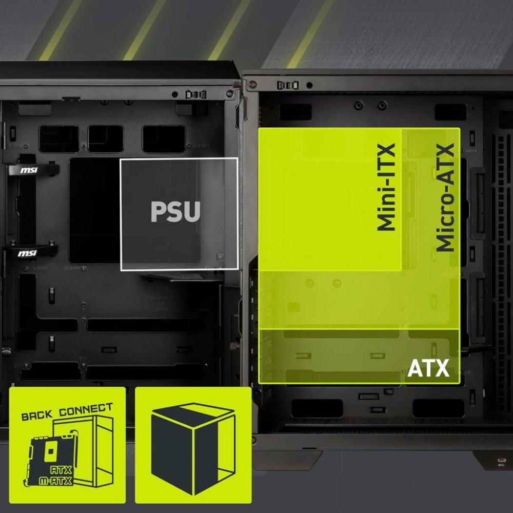 Вміщує відеокарти до 360 мм завдовжки та кулер ЦП заввишки до 170 мм.