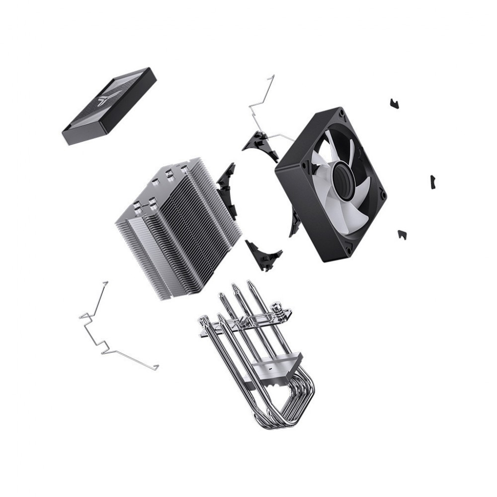 Для процесорів - INTEL, AMD, сокет - 1151, AM4, 1150, 1155, 1200, 1700, AM5, 1156, матеріал радіатора - алюміній, діаметр вентиляторів - 92 мм, Максимальна частота обертів - 2200 об/хв, рівень шуму - 33.8 dB, роз'єми живлення - 3-pin, 4-pin, Підсвічування - ARGB, 4 теплові трубки