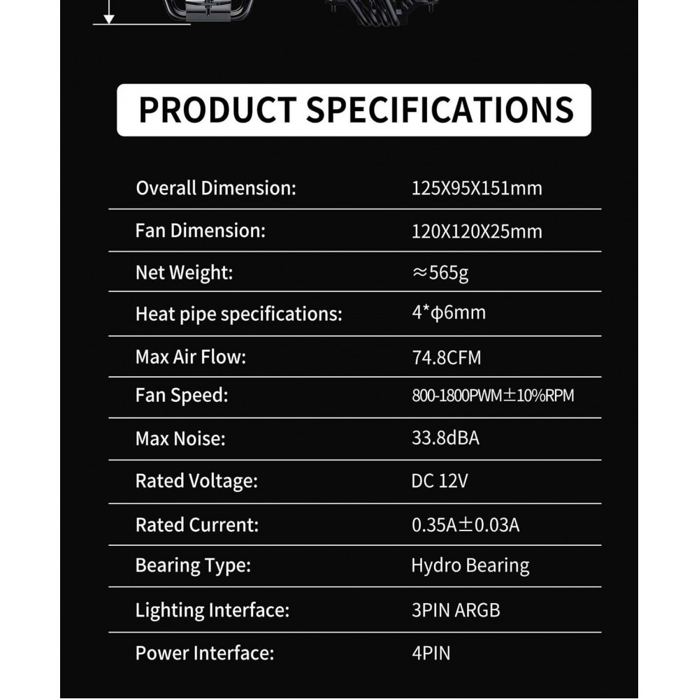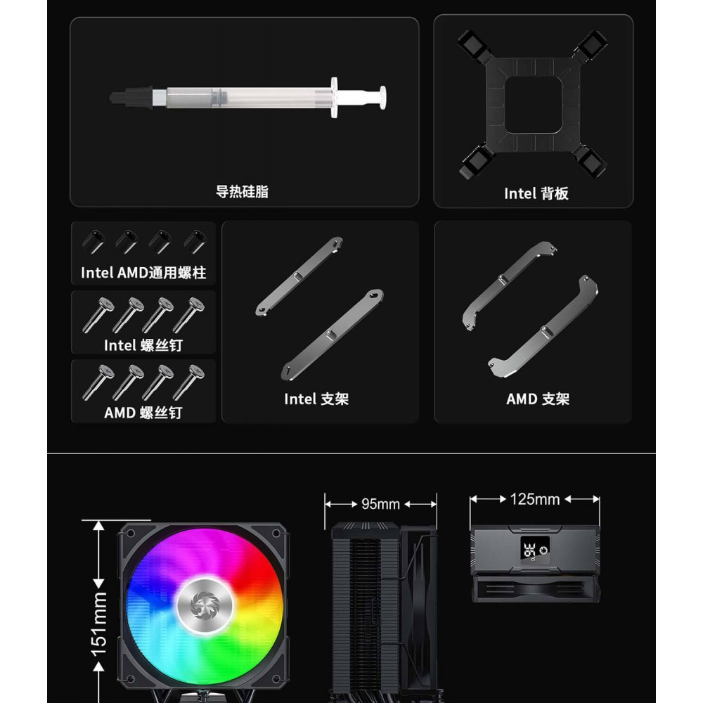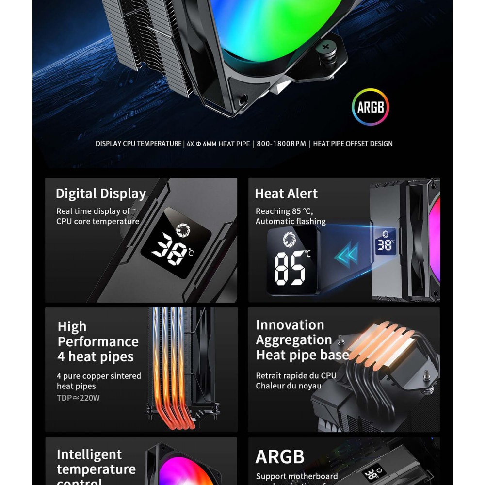Процесорний кулер Intel/AMD,TDP 220W,Intel LGA: 1366/115X/1200/1700/1851;AMD:AM4/AM5 Sigma 520 Digital BK
