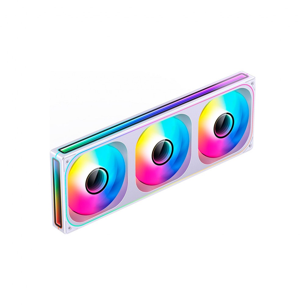 JONSBO ZB-360W White — це сучасний корпусний вентилятор, створений для ефективного охолодження та стильного оформлення вашого ПК. Комплект складається з трьох вентиляторів у єдиній рамі, що значно спрощує монтаж та підключення, забезпечуючи акуратний вигляд системи.
