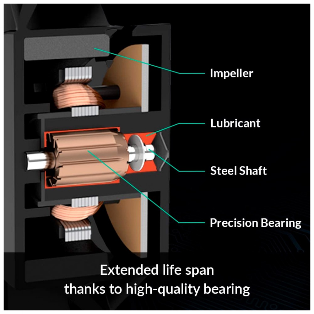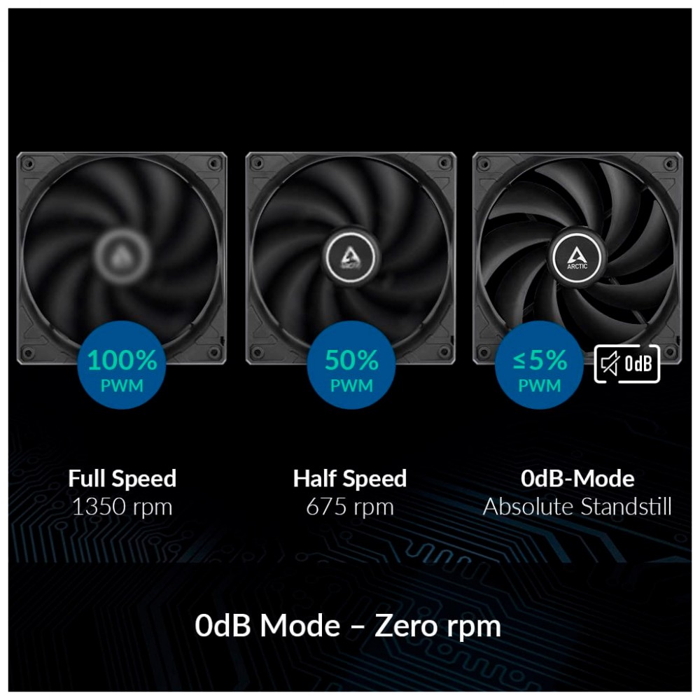 Навіть на низьких швидкостях робочий звук нового двигуна ARCTIC ледь помітний. Завдяки синусоїдальному намагнічуванню новий двигун створює лише близько 5% вібрації від комутації звичайного двигуна постійного струму без фільтра.
