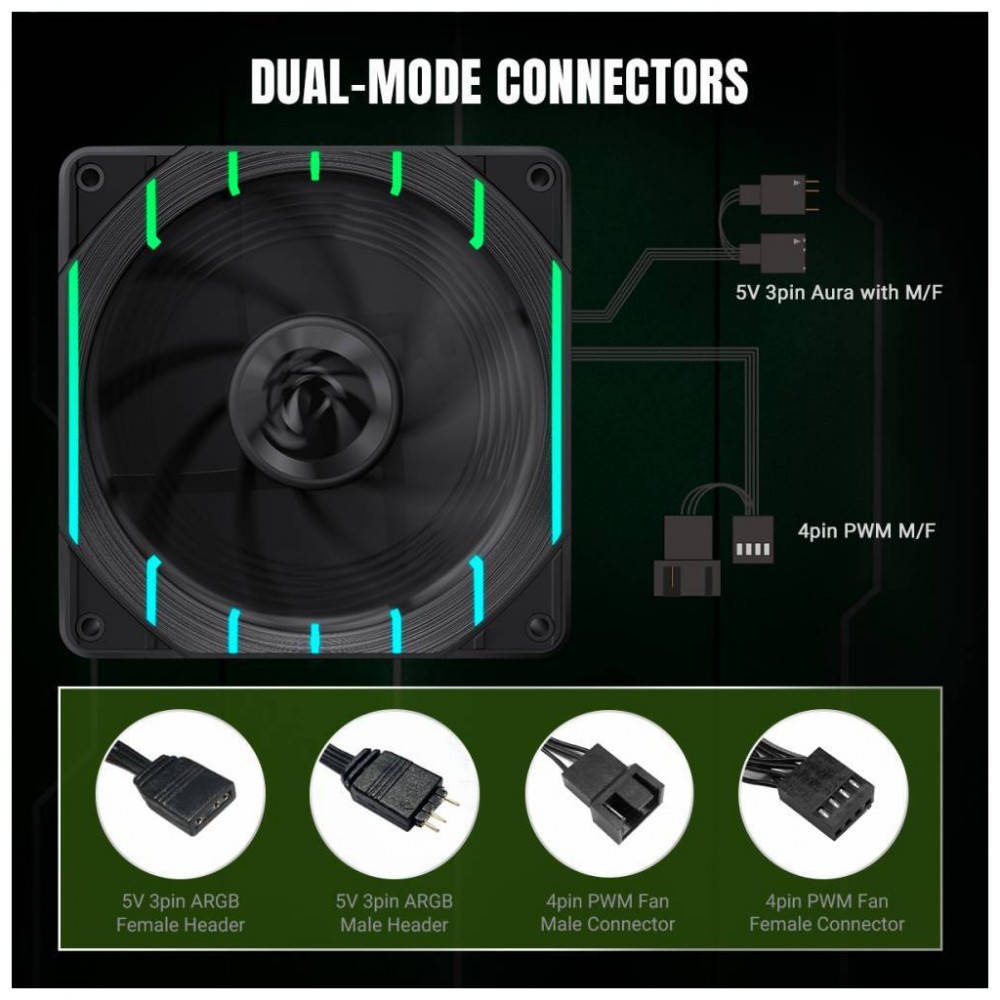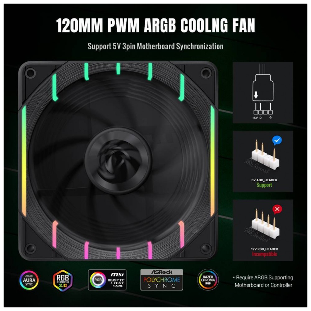 Кулер для корпусу 120мм 3pin AURA (M/F)&4pin PWM Air Flow66.89 CFM Static Air Pressure2.62mm - H2ON Tornado T12 ARGB-R