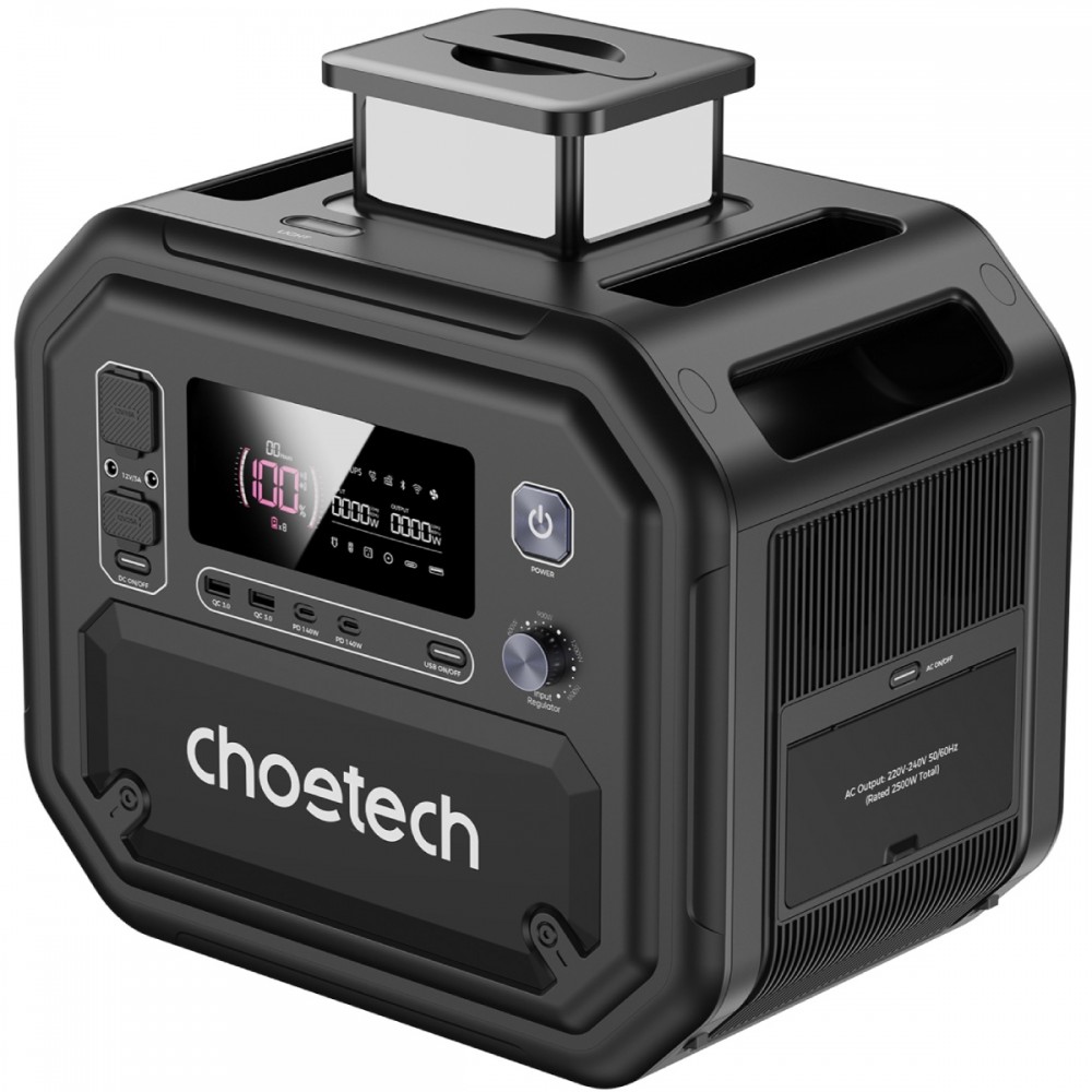Портативна зарядна станція Choetech BS064 потужністю 2500 Вт призначена для безпечного та безперебійного живлення електрообладнання поза електромережею.