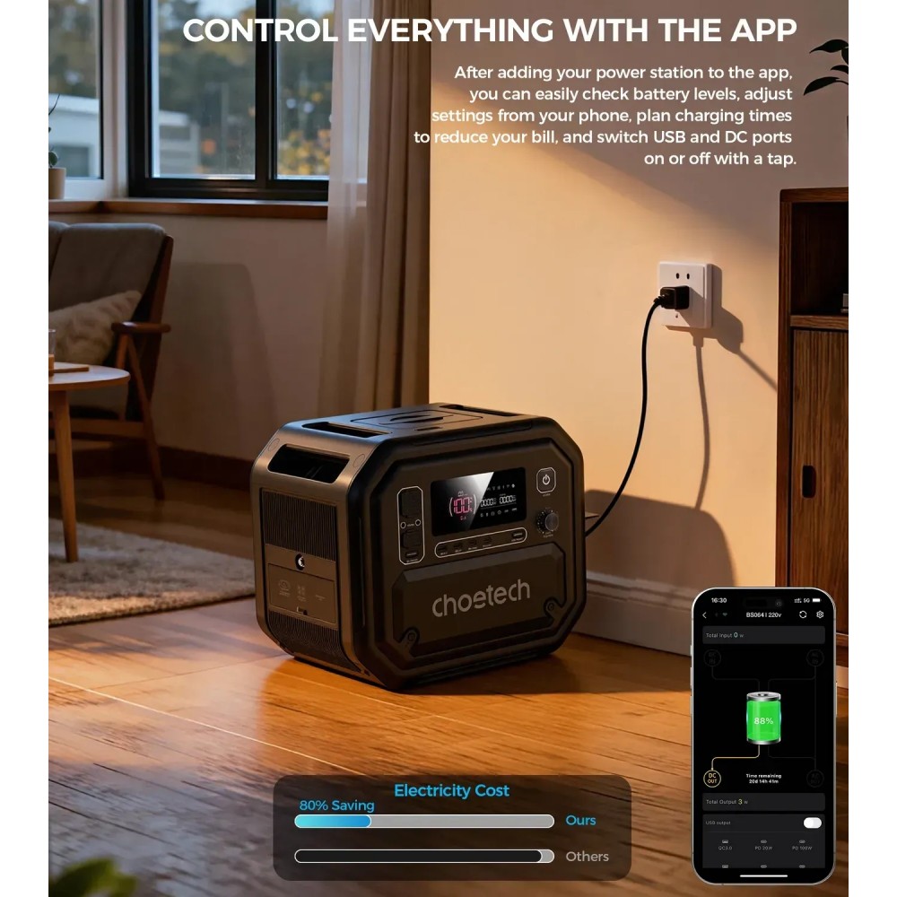 Зарядна станція Choetech BS064 2500Вт (2160Вт/г) AC,LiFePo4,MPPT, UPS, PD100 Вт
