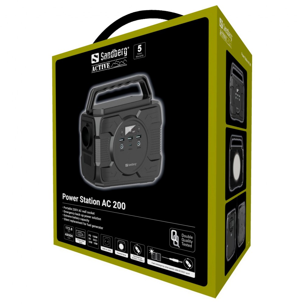 Зарядна станція з чистою синусоїдою Sandberg AC 200 (173 Вт/г) 200W призначена для безпечного та безперебійного живлення електрообладнання поза електромережею.