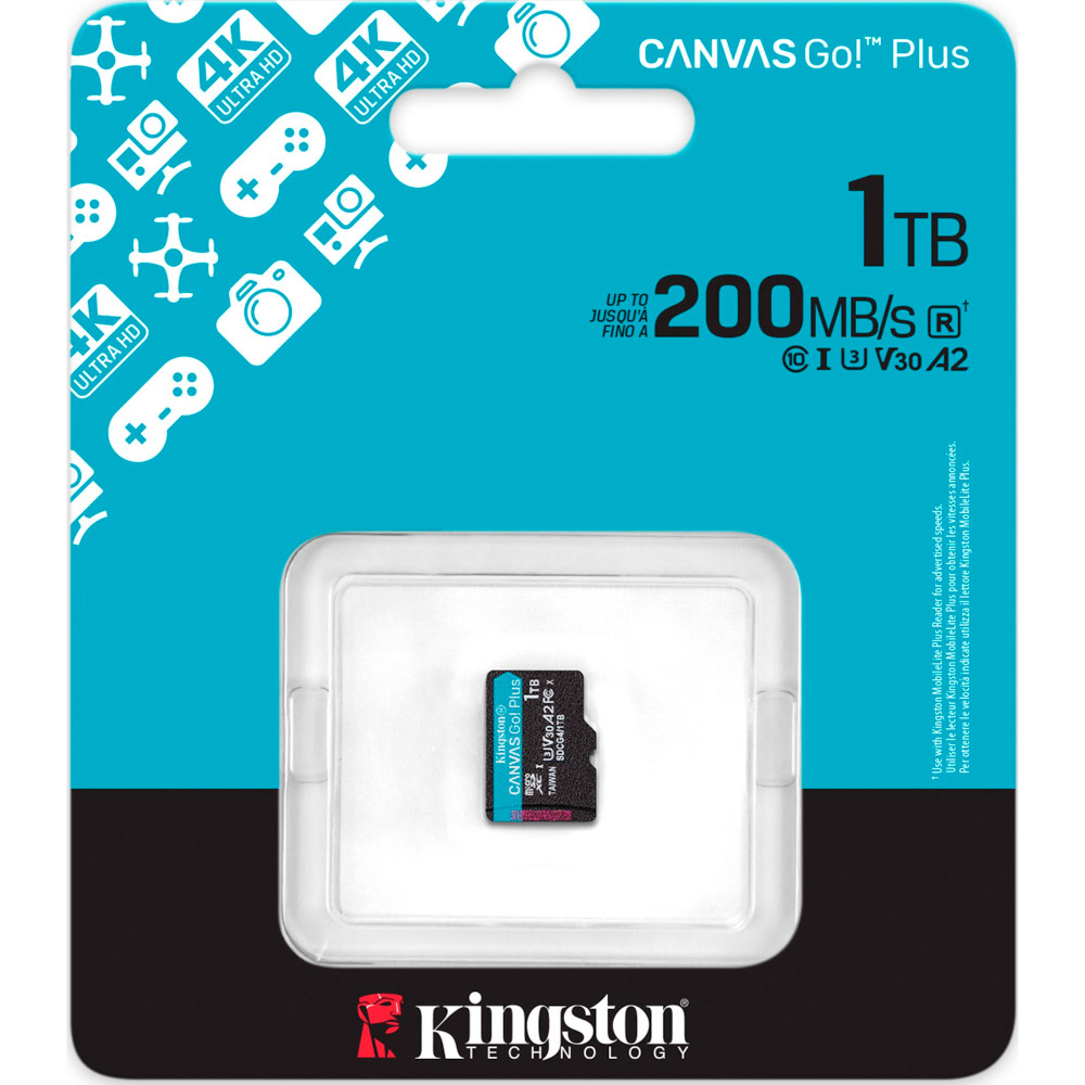 Карта пам'яті 1TB microSDXC сlass 10 UHS-I U3 V30 A2 Canvas Go P Kingston (SDCG4/1TBSP)