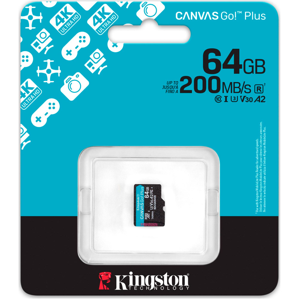 Карта пам`яті MicroSDXC 64GB UHS-I/U3 Class 10 Kingston Canvas Go! Plus R200/W200MB/s (SDCG4/64GBSP)