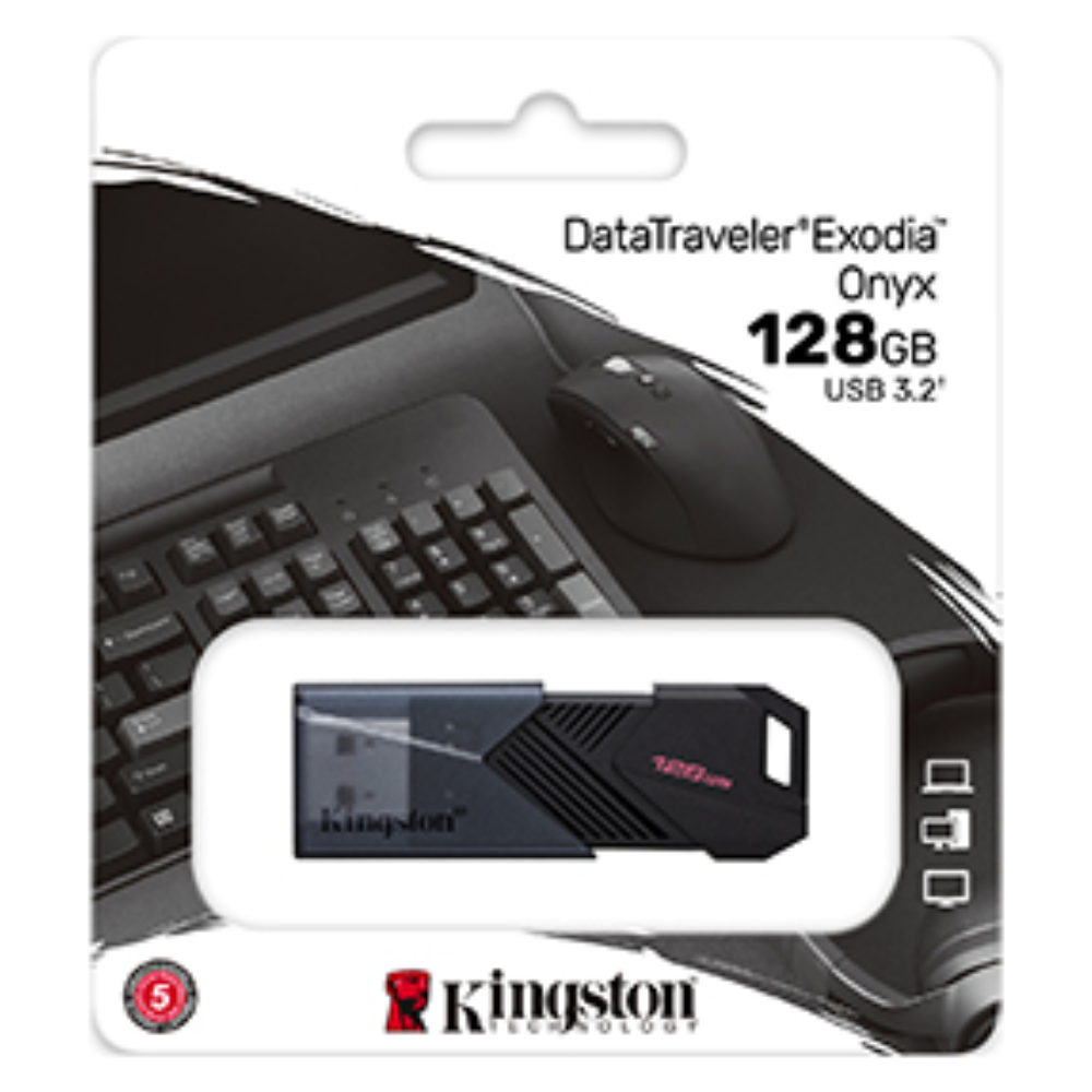 Стильний чорний матовий дизайн накопичувача DataTraveler Exodia Onyx добре пасує до інших пристроїв. Накопичувач оснащений інтерфейсом USB 3.2 Gen 1, тому легко може працювати практично з будь-якими пристроями від новітніх ПК до, наприклад, медіаплеєрів колишніх поколінь.