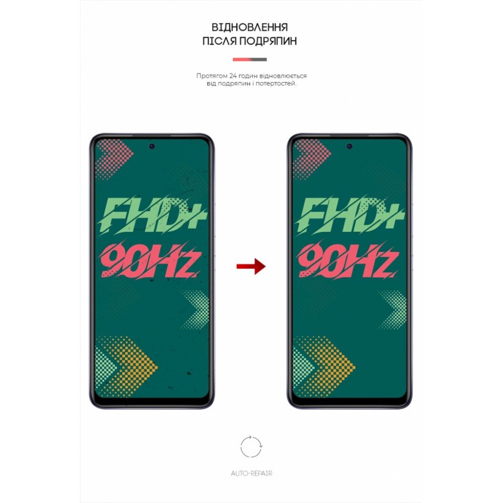 - Технологія самовідновлення: завдяки властивості Auto-Repair, плівка здатна відновлюватися від дрібних подряпин протягом 24 годин.