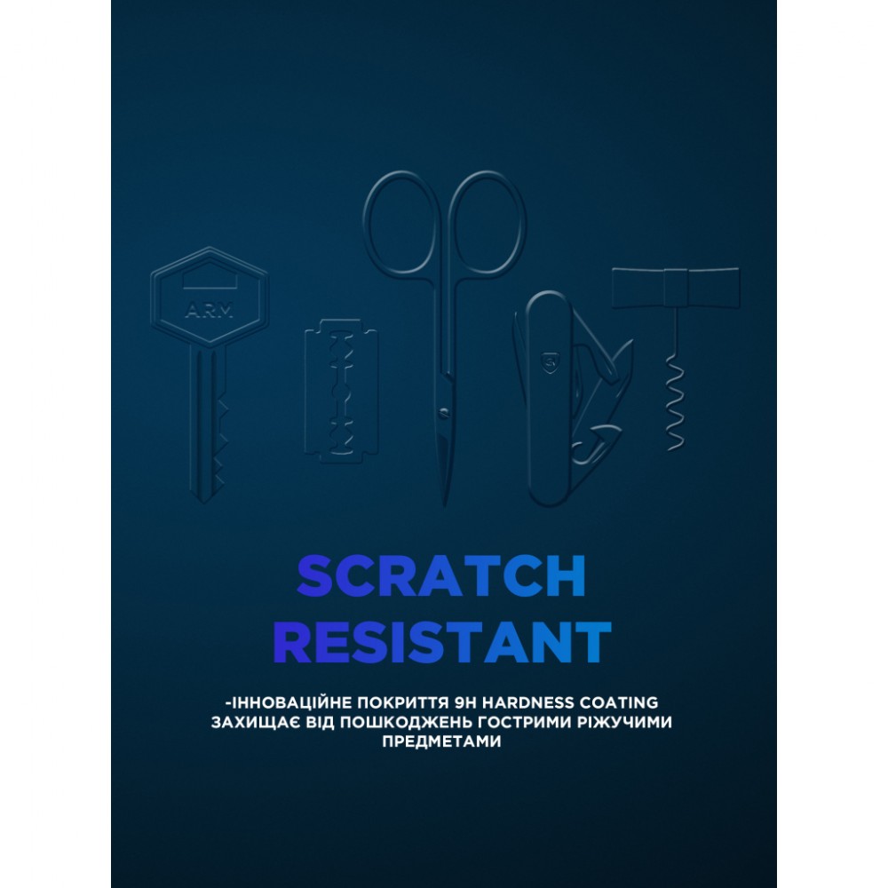 У виробництві використовується високоякісне загартоване скло, завдяки покращеній технології hardness coating, воно менш схильне до виникнення подряпин і пошкоджень гострими предметами, при цьому залишаючись ультратонким і міцним, має гладку поверхню і не потовщує ваш телефон.