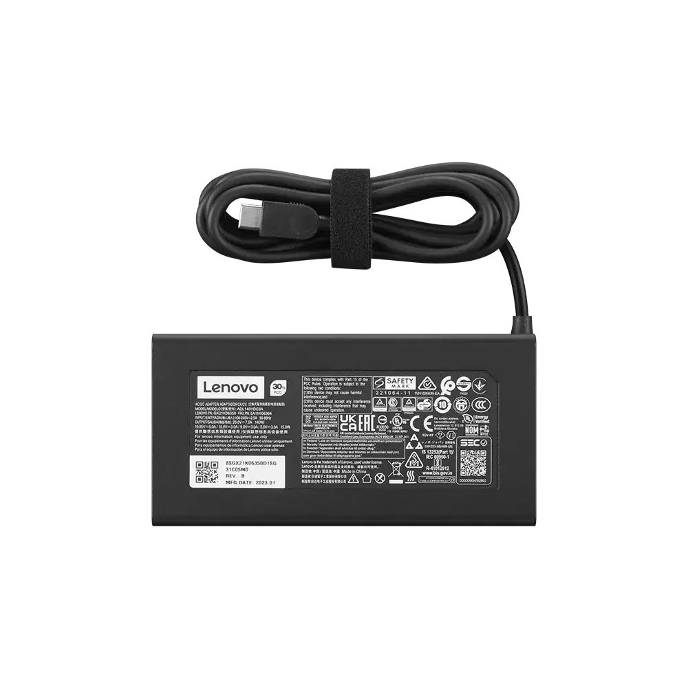 Цей адаптер ідеально підходить для використання вдома, в офісі або в дорозі. Він відповідає високим стандартам якості Lenovo, забезпечуючи довготривалу та ефективну роботу ваших пристроїв. Lenovo Legion Slim 140W AC Adapter (USB-C) — це ваш надійний партнер для безперебійного живлення ноутбука.