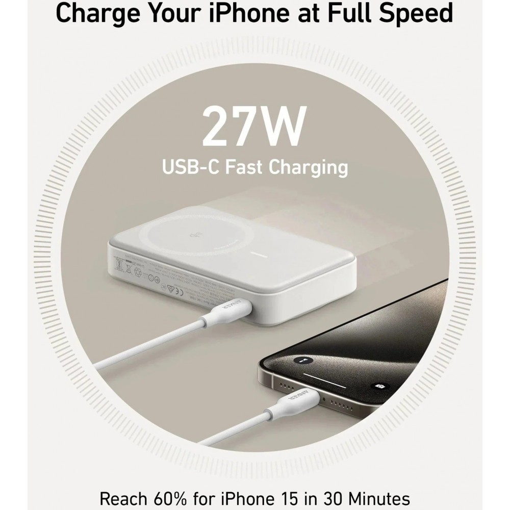 УМБ ANKER MagGo 10000mAh, Qi2/15W, PD, 27W, USB-C, white (A1654G21)