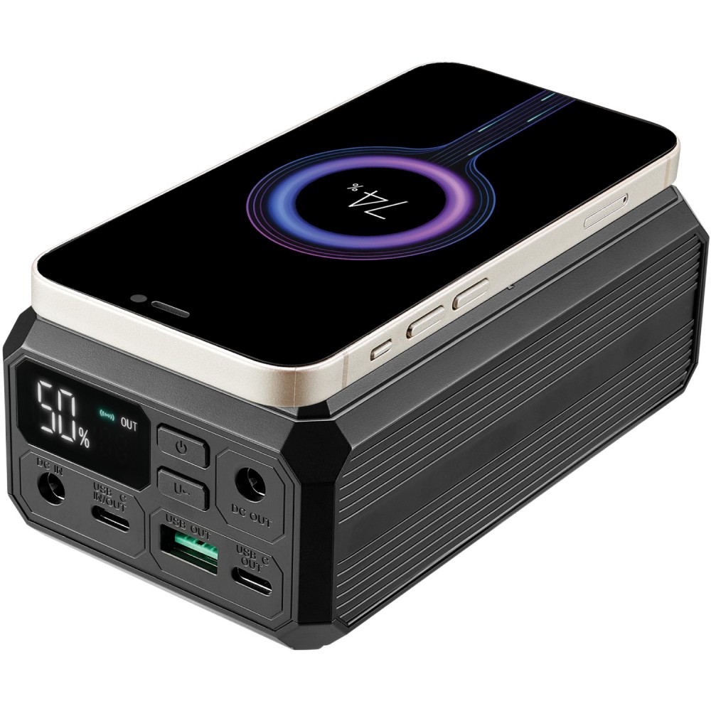 Вона оснащена чотирма виходами для поповнення заряду ваших портативних гаджетів та підтримує функцію бездротового заряджання з потужністю до 10 Вт.