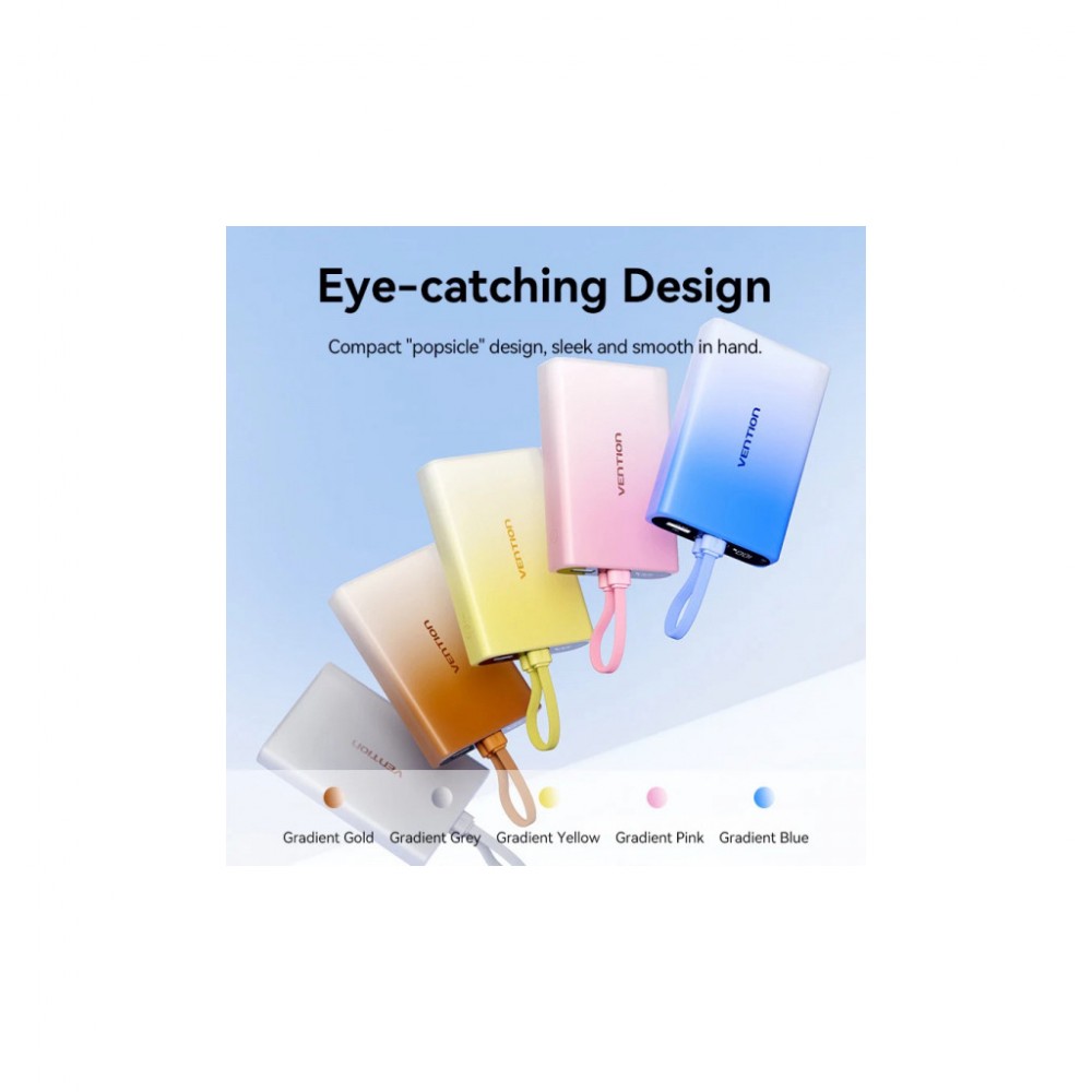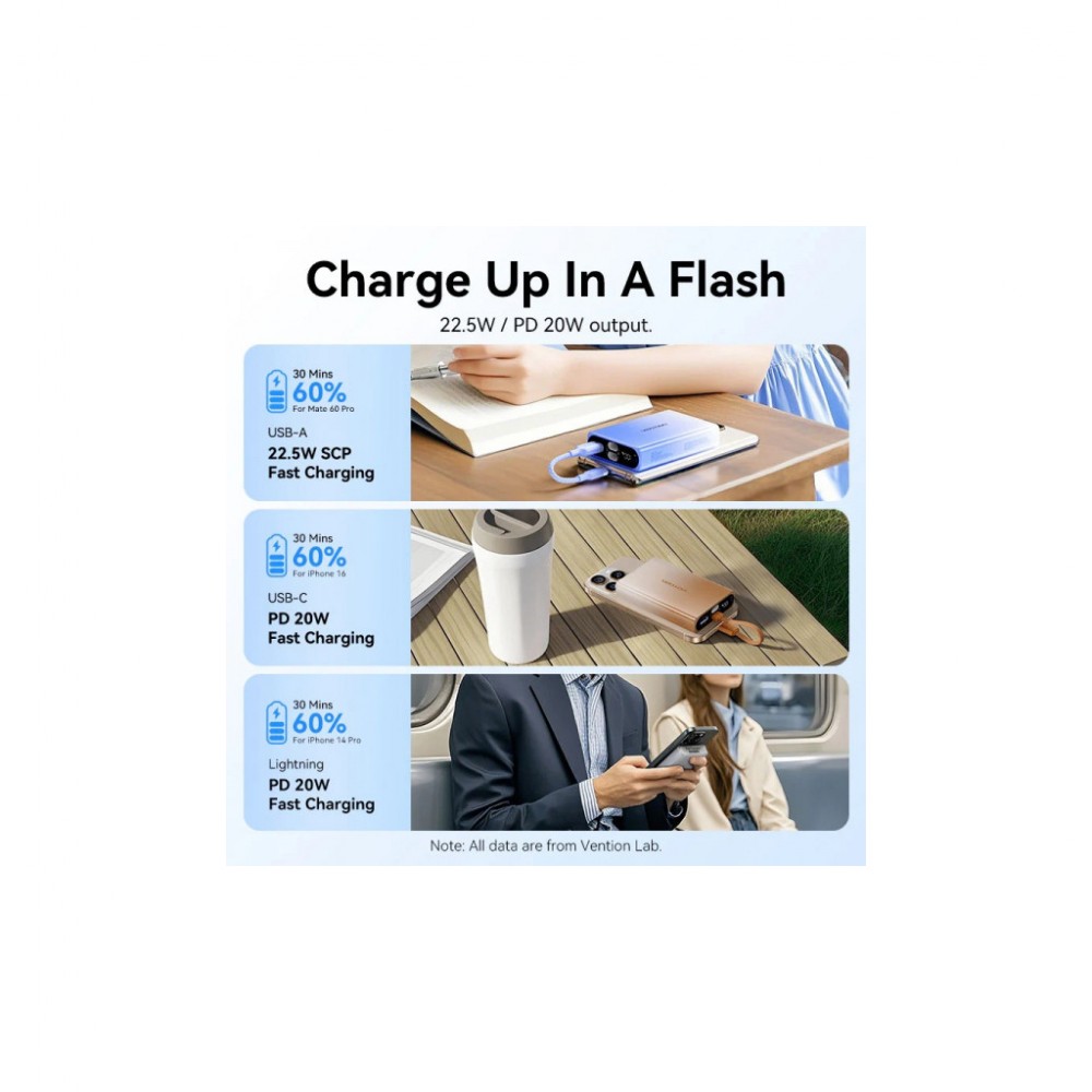 Компактна універсальна мобільна батарея ємністю 10000 мАг Vention 10000 mAh 22,5W PD допоможе швидко та безпечно зарядити USB пристрої. Вона підтримує протокол швидкого заряджання PD 22,5 Вт.