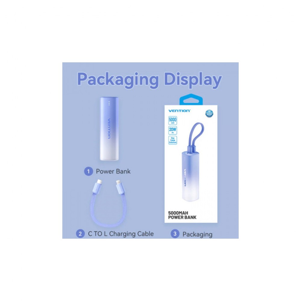 Компактна універсальна мобільна батарея ємністю 5000 мАг Vention 5000mAh 20W PD допоможе швидко та безпечно зарядити USB пристрої. Вона підтримує протокол швидкого заряджання PD 20 Вт.