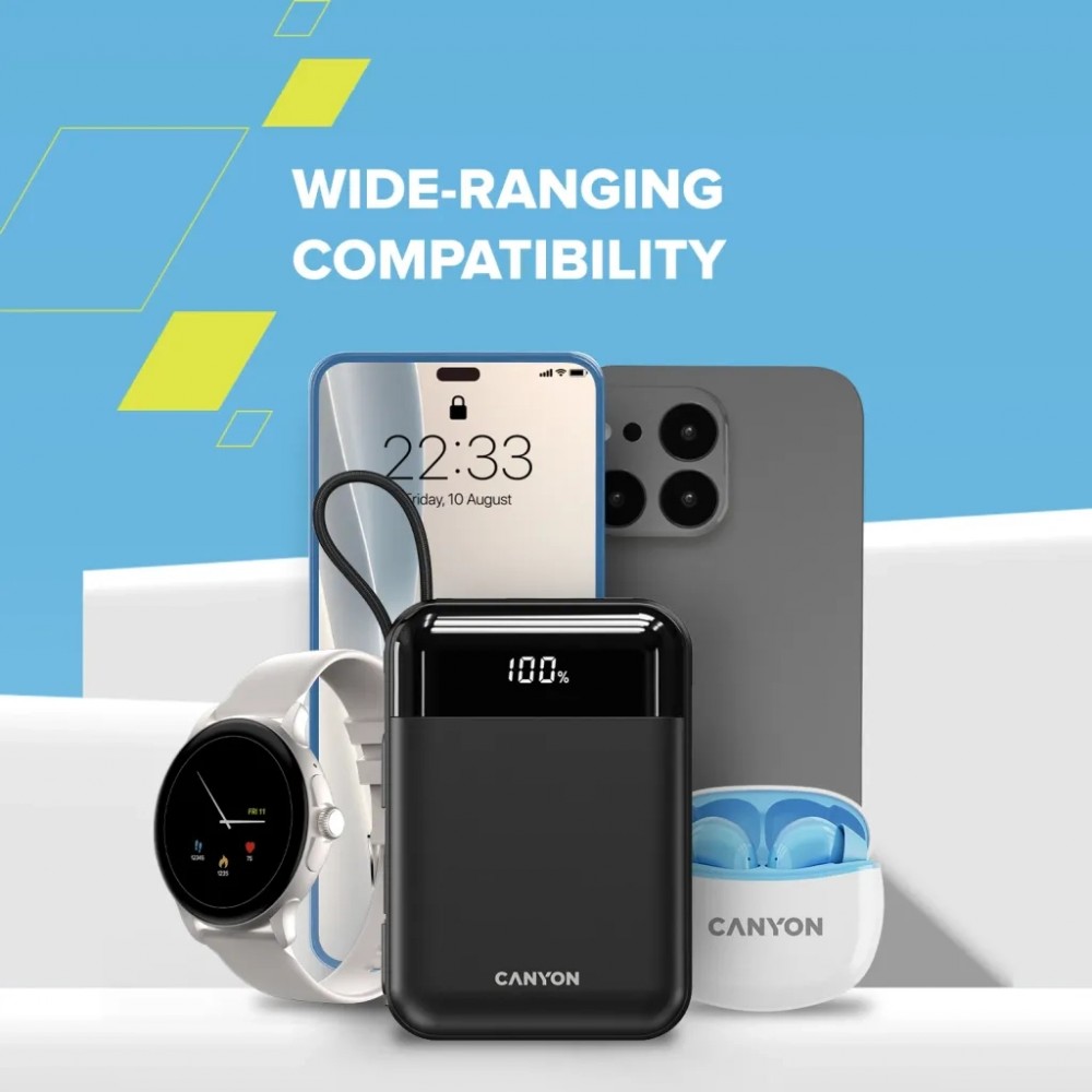 УМБ Canyon 10000mAh OnPower 104 PD/20W, QC/22.5W built-in cab (CNS-CPB104B)