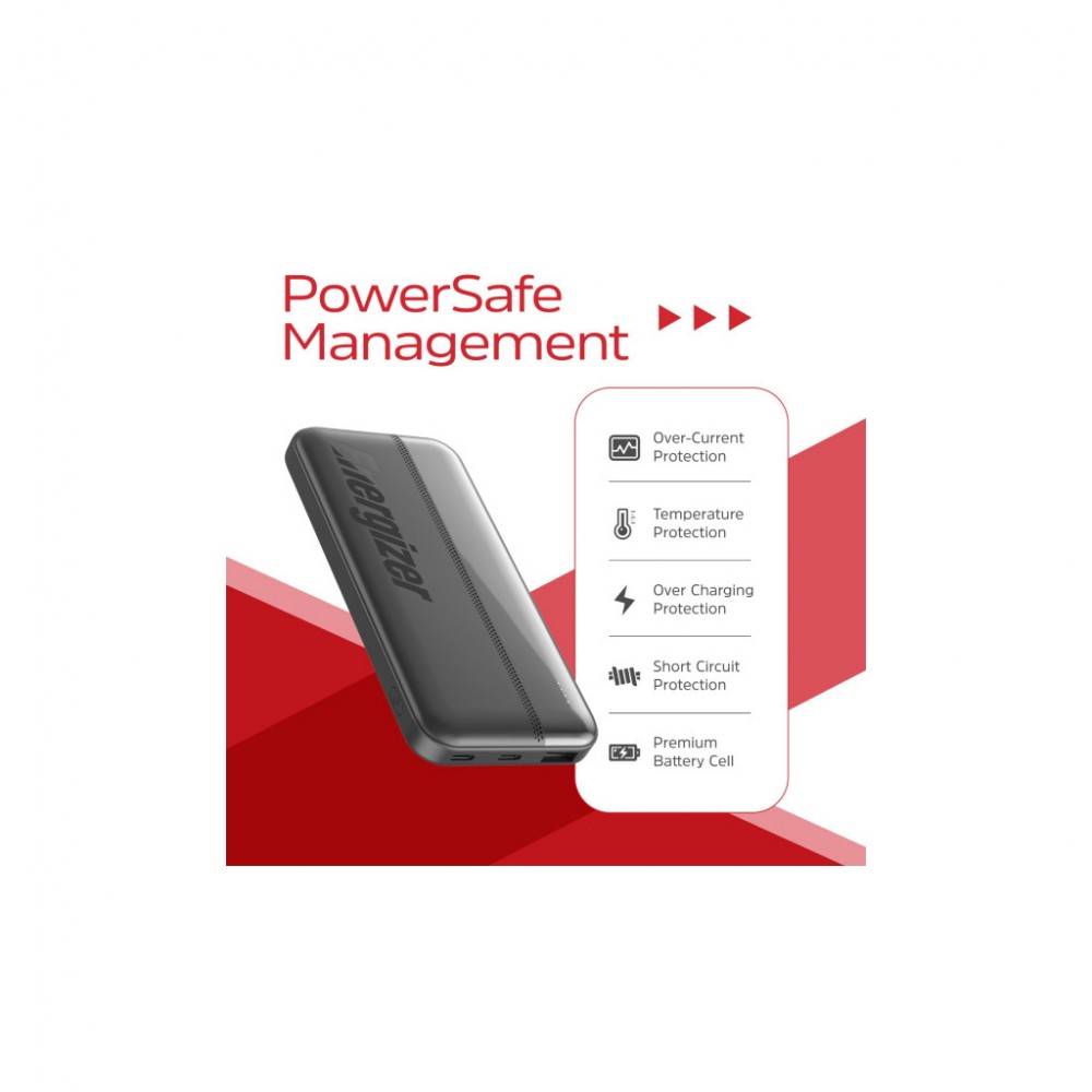 УМБ Energizer 10000mAh 15W, USB-А, 2*USB-C, Black (UE10050CC)