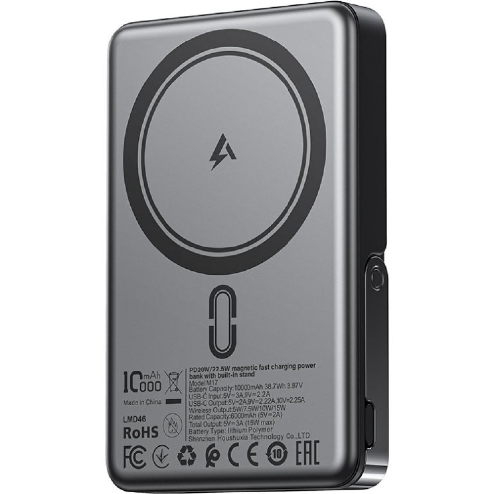 УМБ Acefast Magnetic Wireless 10000mAh 22.5W PD,QC 3.0 USB-C In/Out, QI 15W, with holder M17 Black