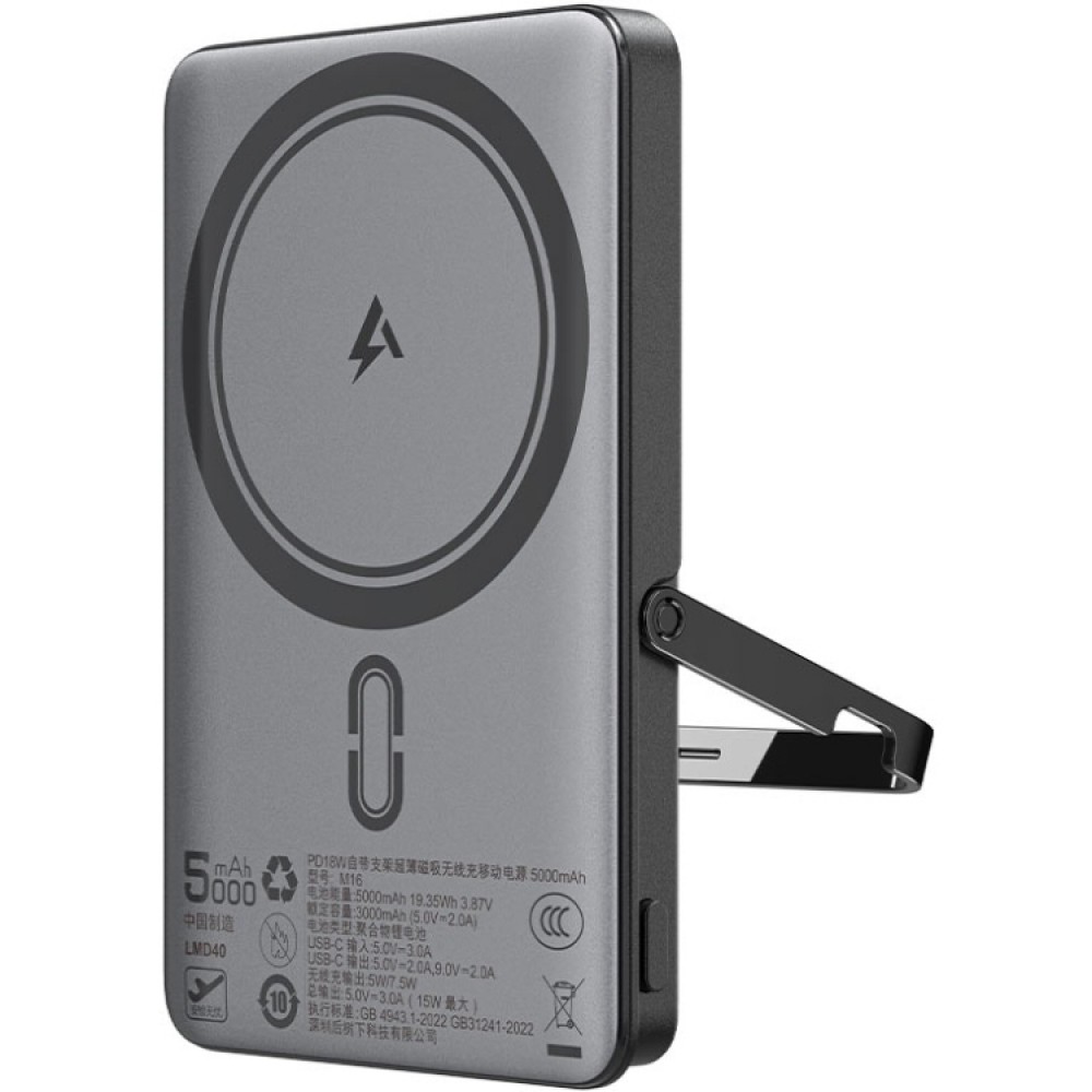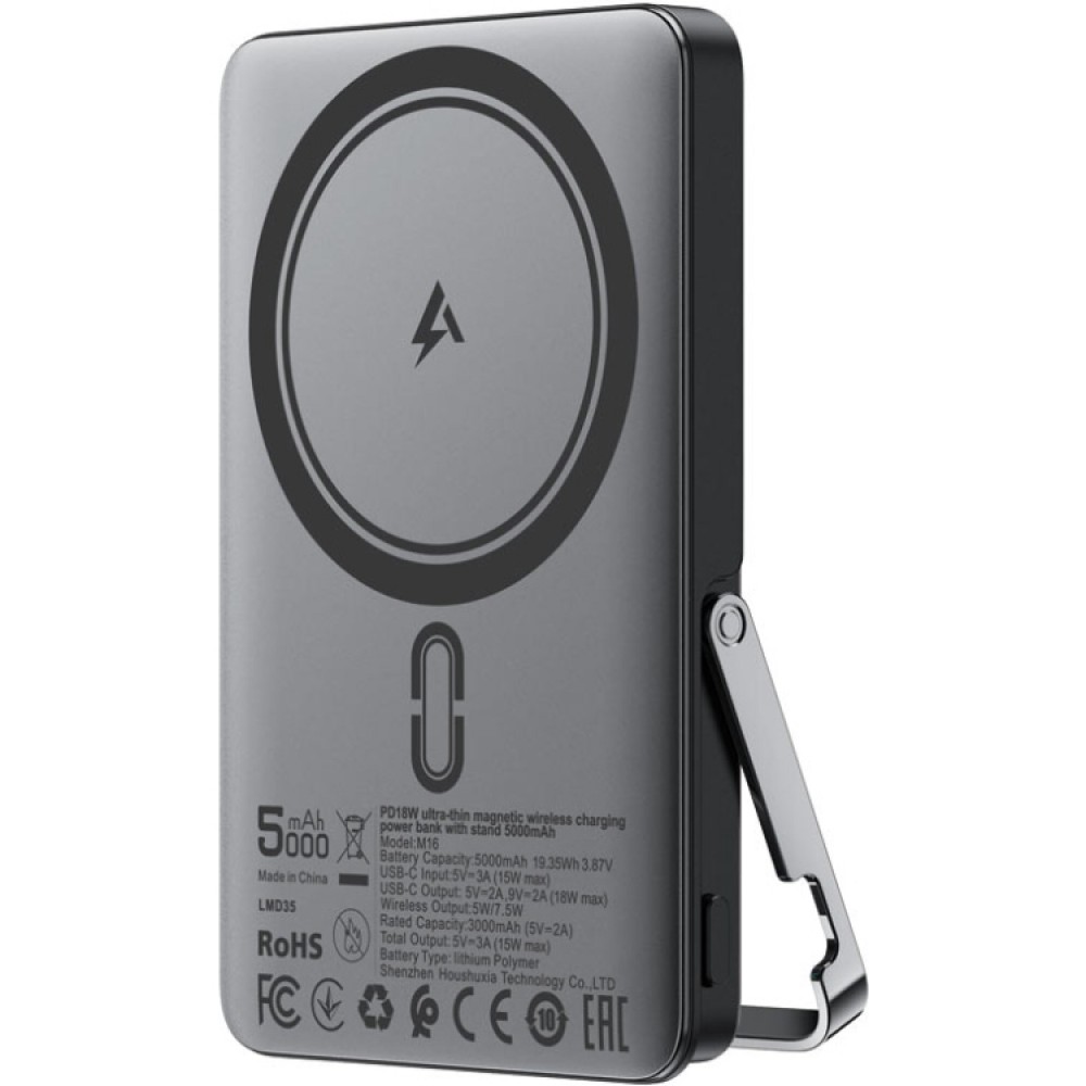 УМБ Acefast Magnetic Wireless 5000mAh 18W PD,QC3.0 USB-C In/Out,with holder, ультра тонкий M16 Black