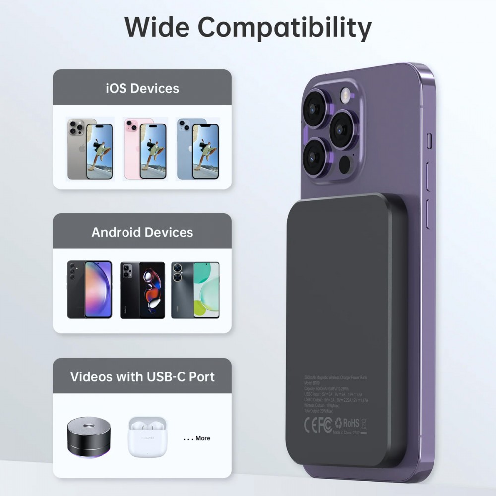 Легка та компактна універсальна мобільна батарея Choetech B709 ємністю 5000 мА·год та потужністю до 20 Вт допоможе швидко зарядити ваші портативні пристрої та аксесуари, зокрема сумісні зі стандартом Qi.