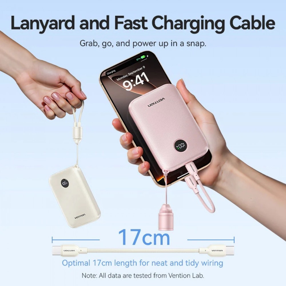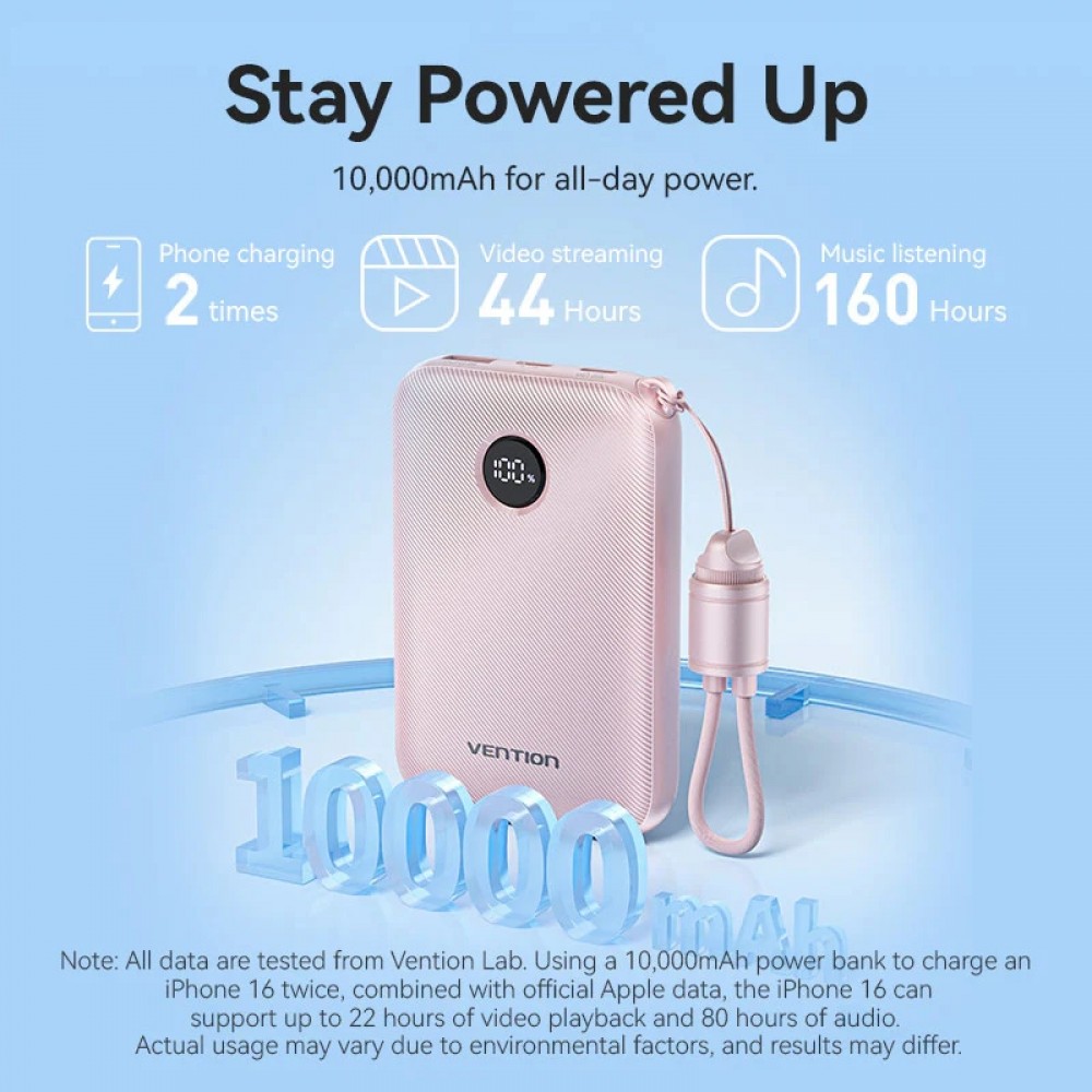 УМБ Vention 10000mAh 22,5W PD, QC USB-A/2xUSB-C In/Out Pink