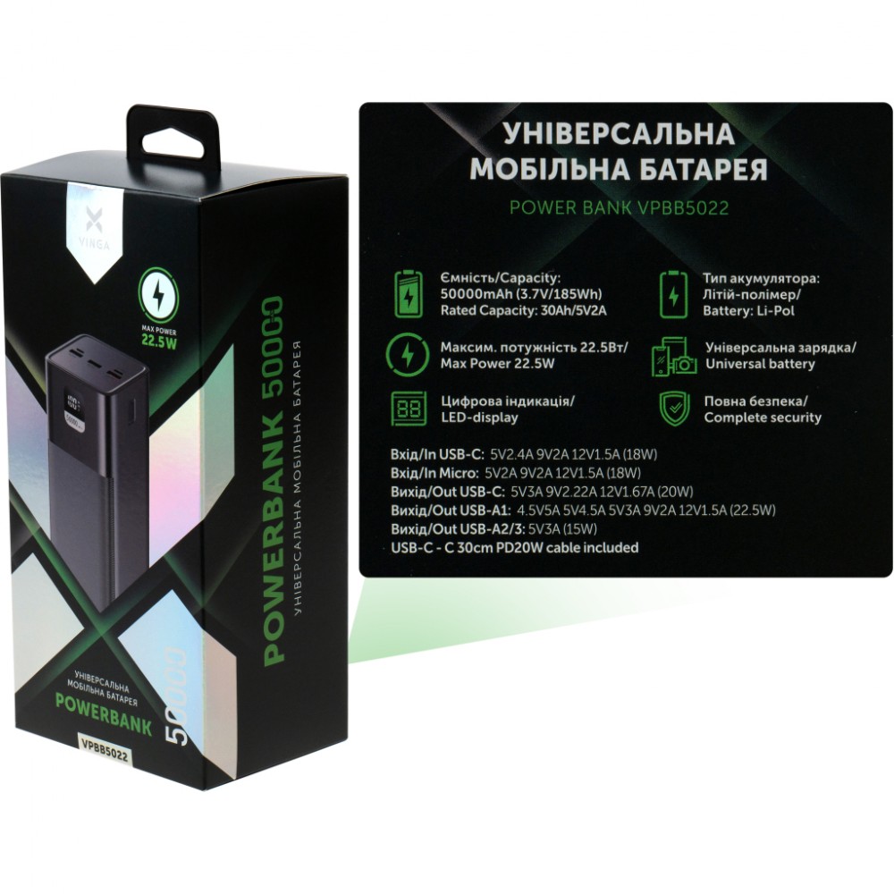 УМБ Vinga 50000 mAh 22.5W Display Black (VPBB5022)