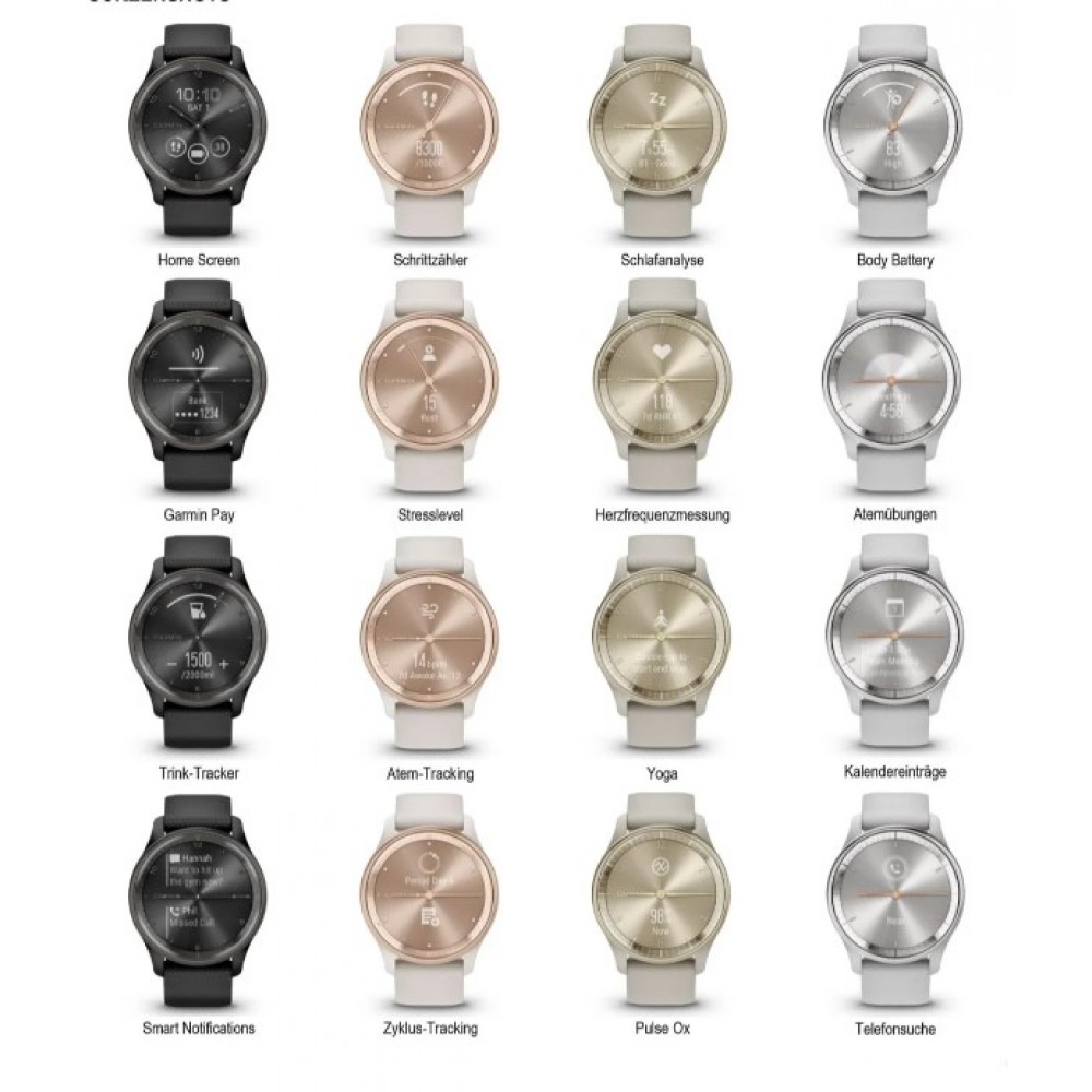Тип - жіночі, Форма годинника - круглі, Операційна система - пропріетарна, Сумісна ОС - iOS, Android, Інтерфейси підключення - Bluetooth, ANT+, Тип дисплея - кольоровий, Діагональ дисплея - 1.01", Тип матриці - AMOLED, Роздільна здатність - 254 х 346, Час автономної роботи до - до 14 днів, Вага - 43 г