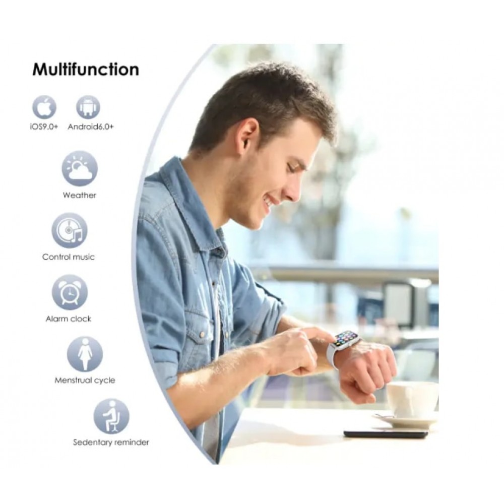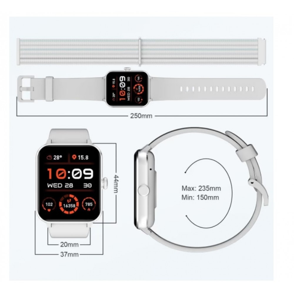 Тип - унісекс, Форма годинника - квадратні, Операційна система - пропріетарна, Сумісна ОС - iOS, Android, Інтерфейси підключення - Bluetooth, Тип дисплея - кольоровий, Діагональ дисплея - 1.85", Тип матриці - TFT, Роздільна здатність - 320 x 386, Час автономної роботи до - до 5 днів