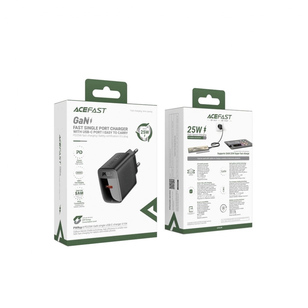 Зарядний пристрій Acefast A104 USB-C PD25W GaN Black (6974316283355)