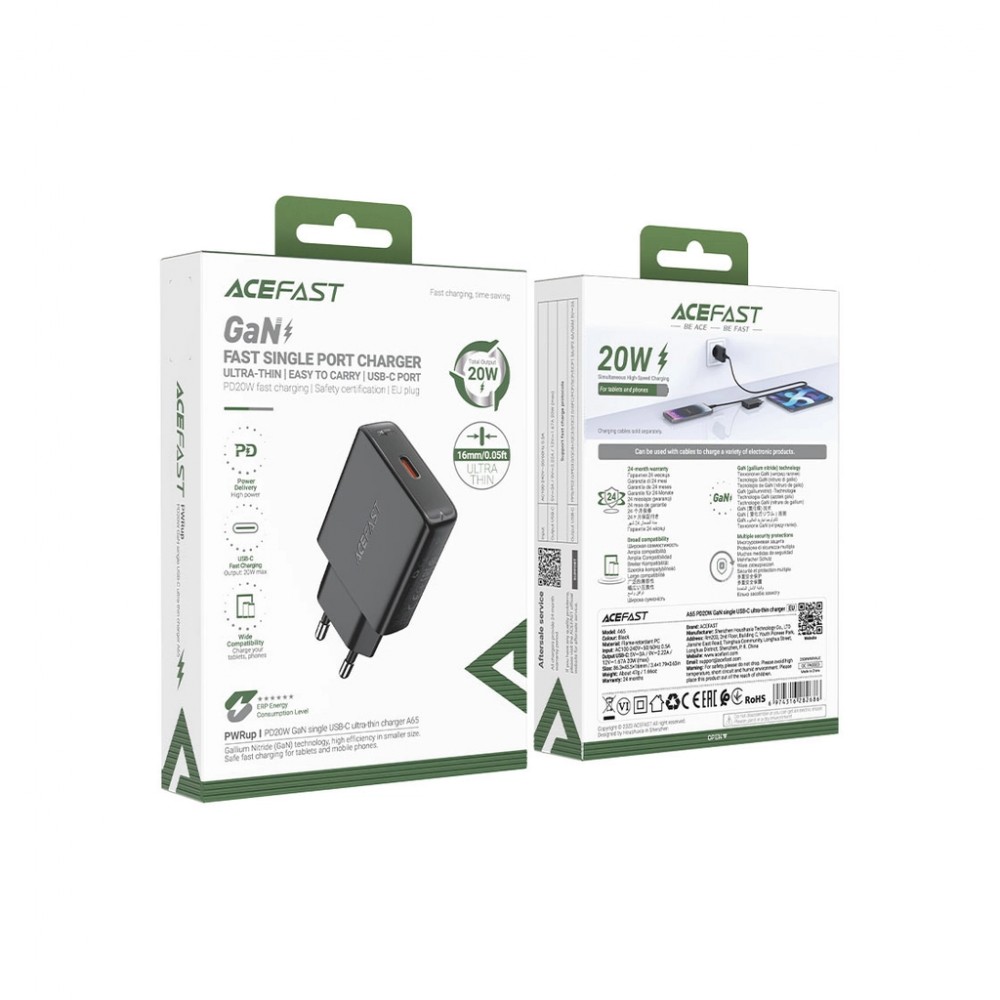 Зарядний пристрій Acefast A65 USB-C PD20W GaN ultra-thin Black (6974316282686)
