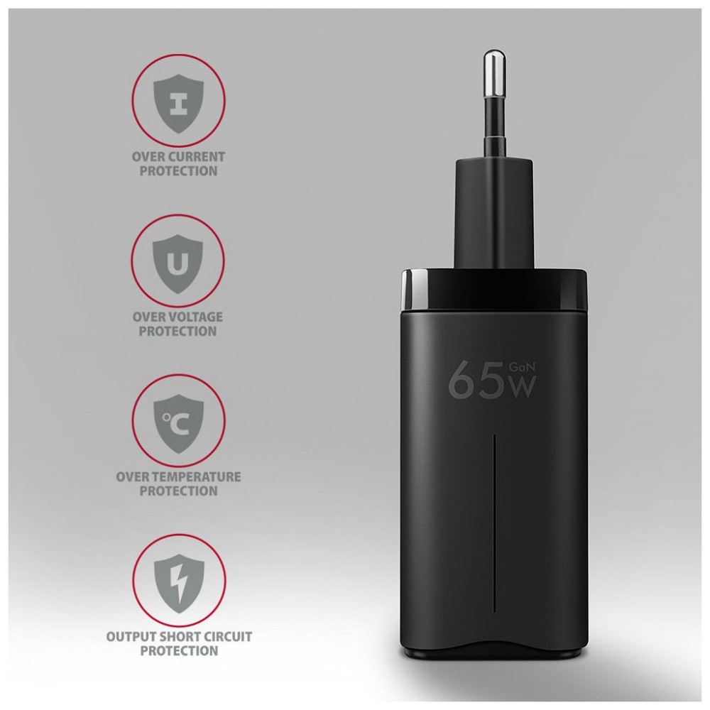 Зарядний пристрій AXAGON 1xUSB + 2xUSB-C 65W QC4+ PD3.0 PPS black (ACU-DPQ65)