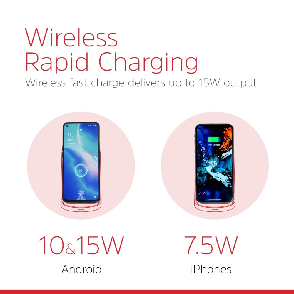 Energizer WCP108 підтримує зарядну потужність 5 Вт/7,5 Вт/10 Вт/15 Вт. Вертикальна конструкція дає можливість розмістити смартфон в горизонтальному або вертикальному положенні для зручного перегляду та заряджати його з максимальною потужністю 15 Вт.