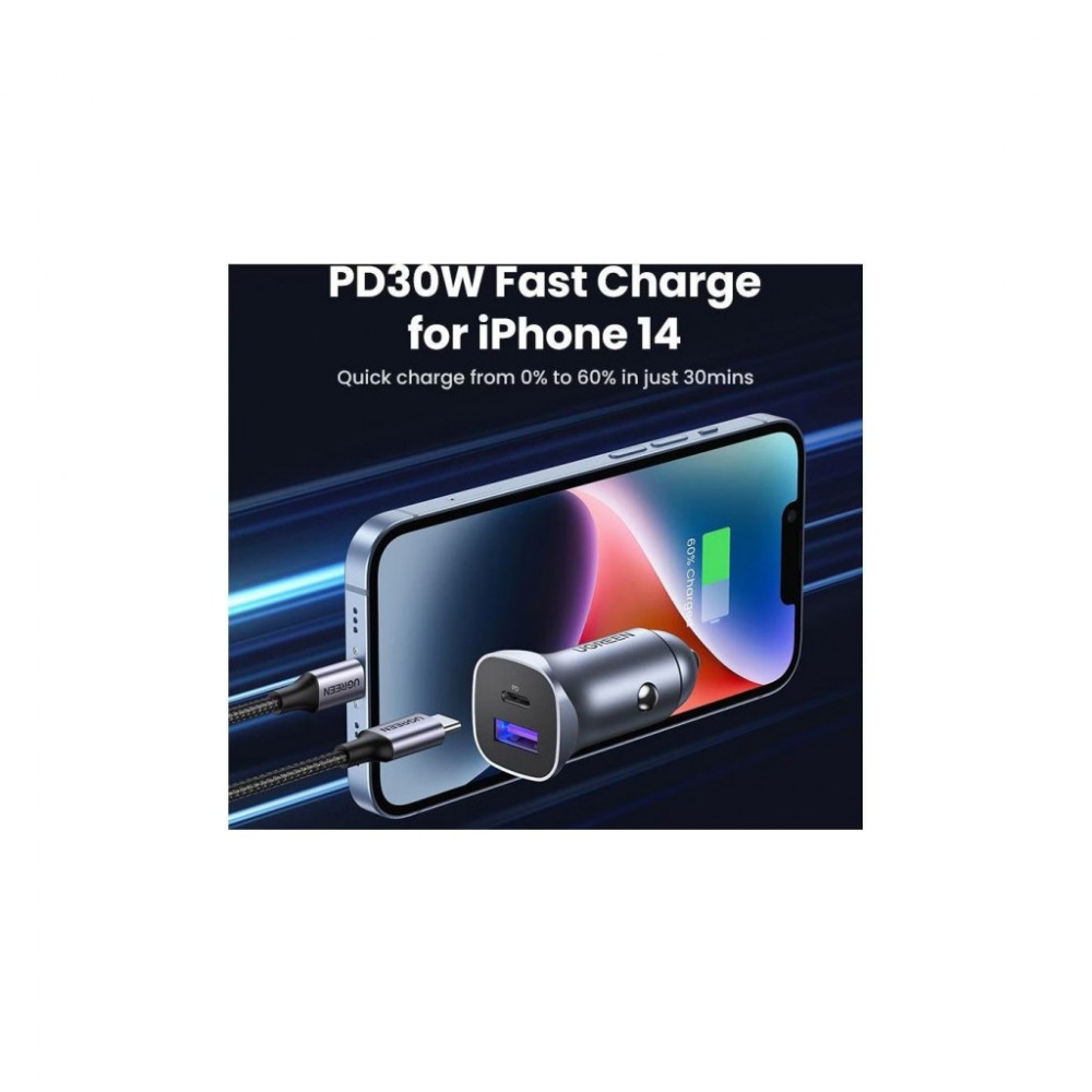 Зарядний пристрій Ugreen 1xUSB-C + 1xUSB 30W car adapter CD130 black (40858)