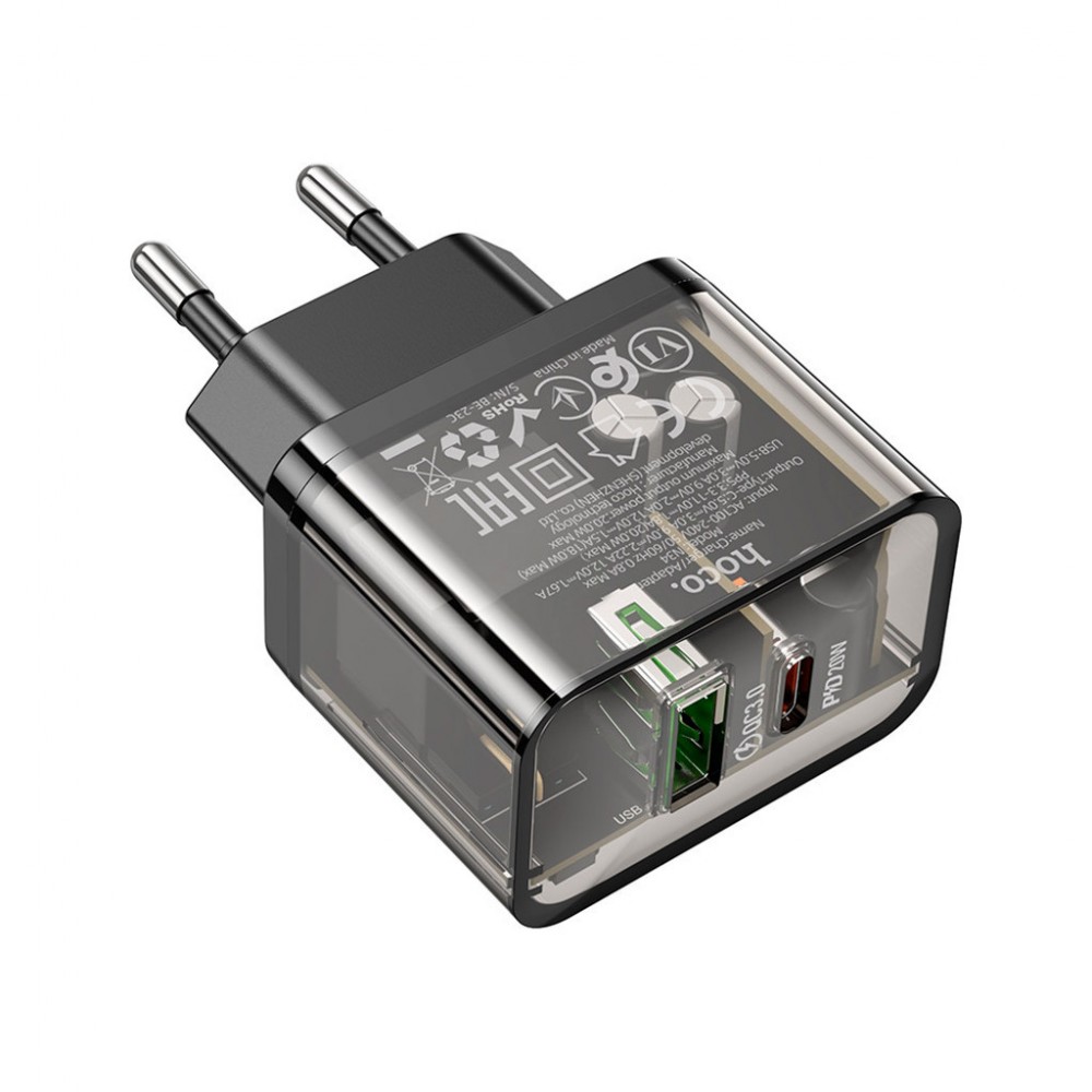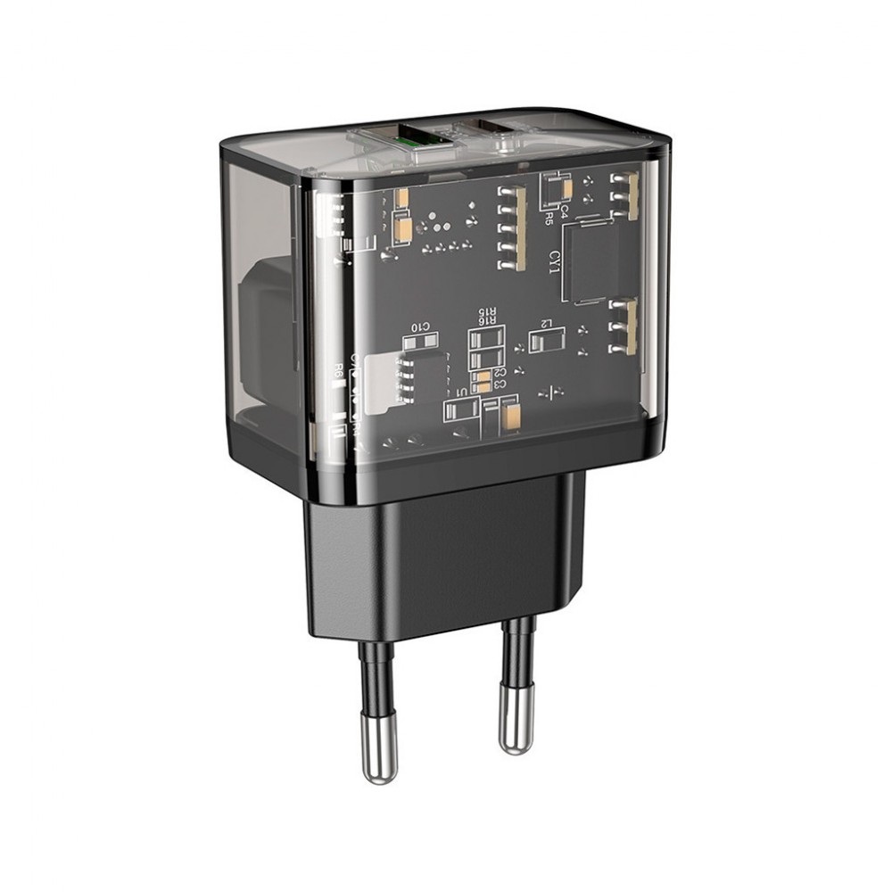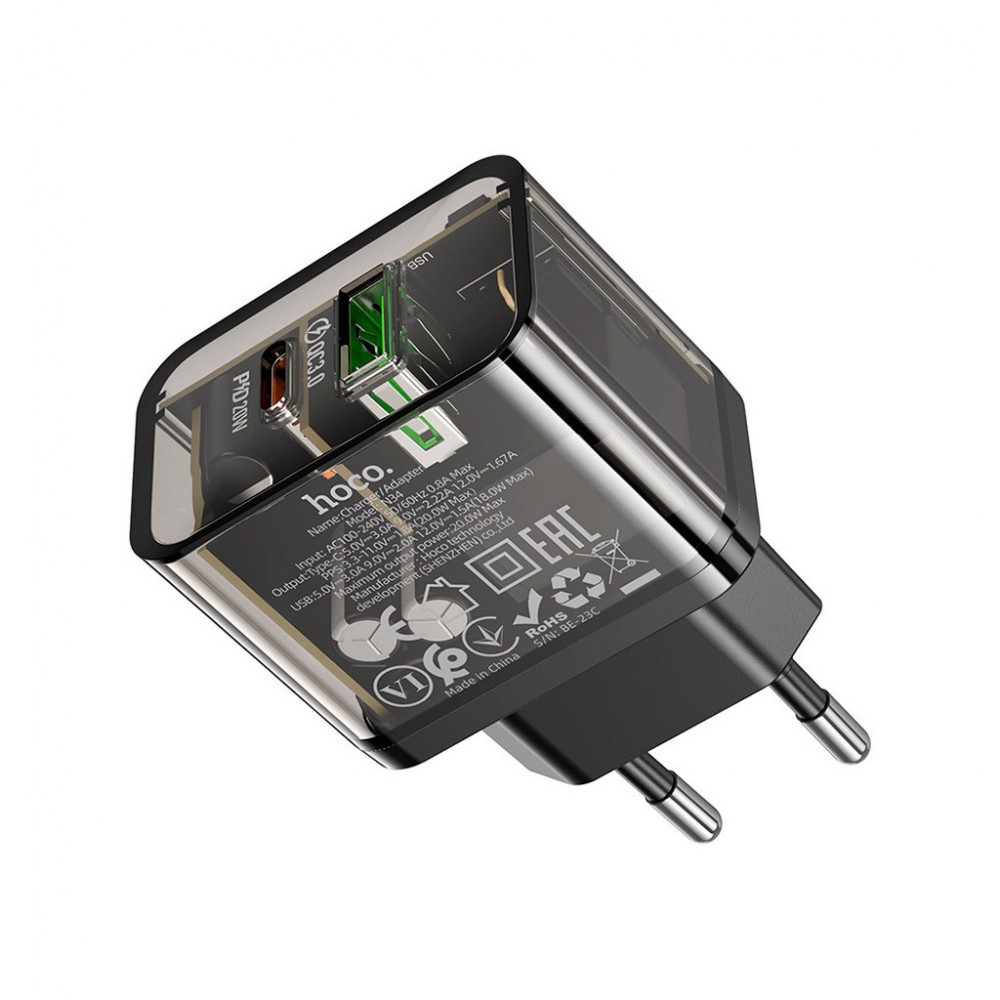 Тип - адаптер, Живлення - мережа, Призначення - універсальне, для смартфона, тип вихідного підключення - USB Type-C, USB, Max - 3 А, 20 Вт, кількість USB портів - 1 x USB, 1 x USB Type C, швидка зарядка - Power Delivery, Quick Charge 3.0, чорний