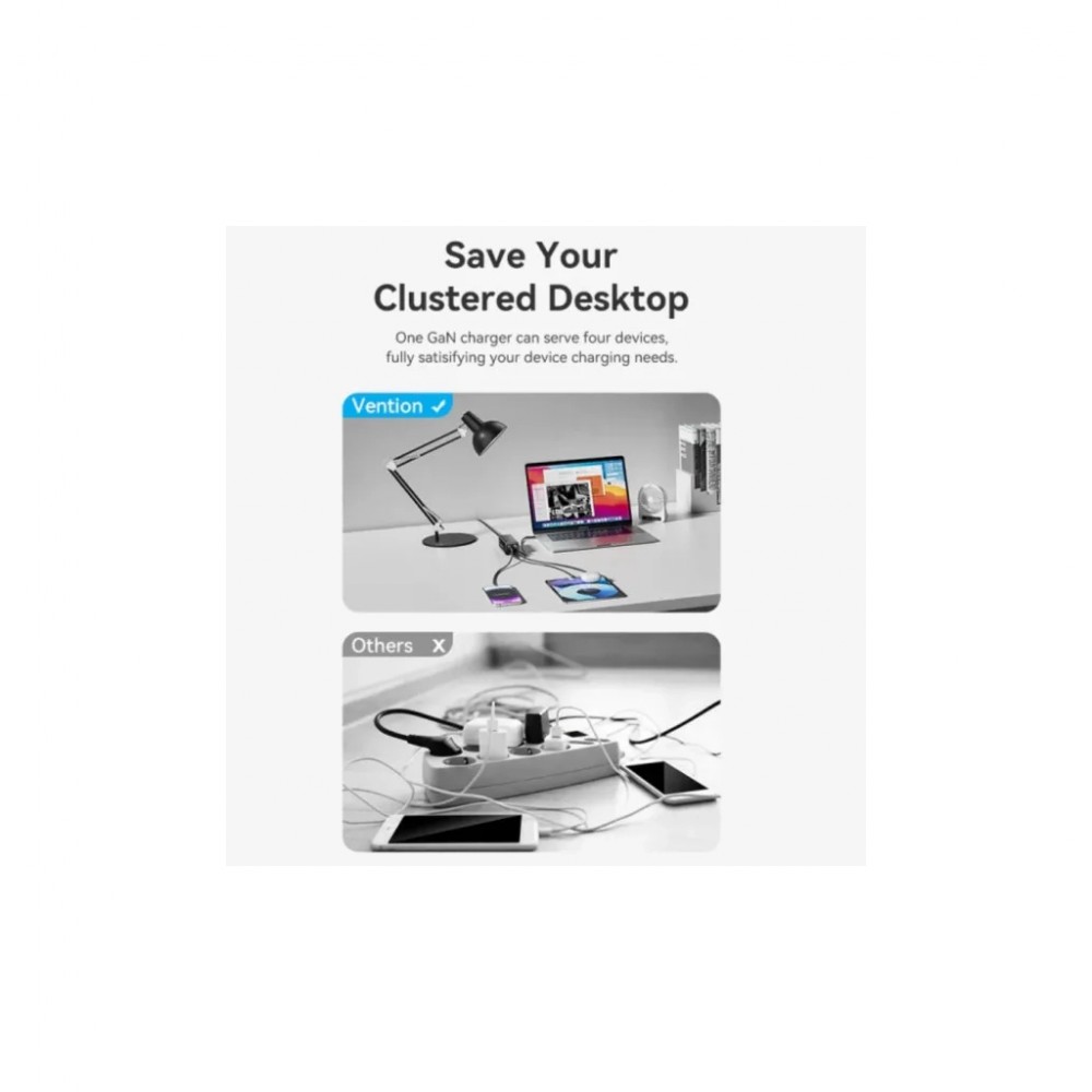 Зарядний пристрій 4xUSB 100W (2xUSB-C+2xUSB-A) PD3.0/QC 3.0/GaN Black Vention (FBSBG-EU)