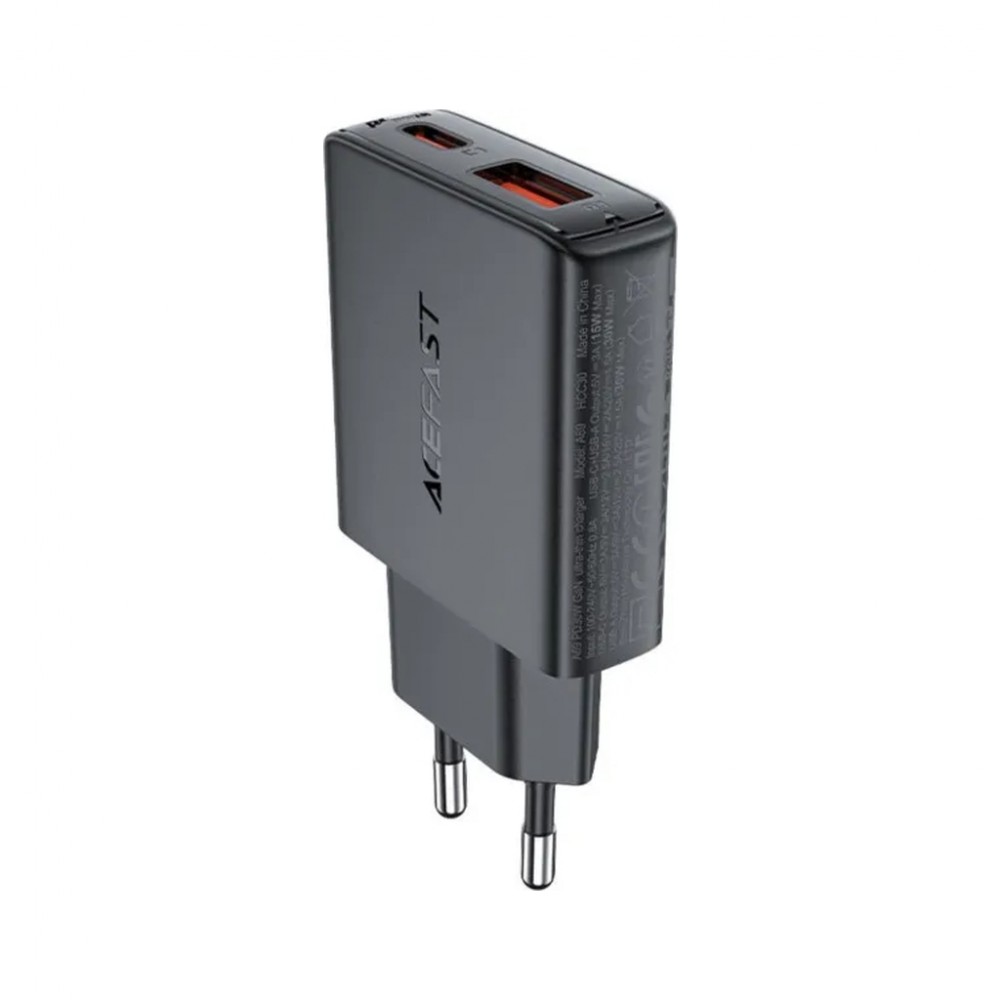 Ультратонкий зарядний пристрій Acefast A69 – це чудове рішення для поповнення заряду смартфонів, планшетів, ігрових приставок та інших USB пристроїв. Він оснащений двома портами – USB Type-С та USB Type-A з максимальною потужністю до 30 Вт кожен.