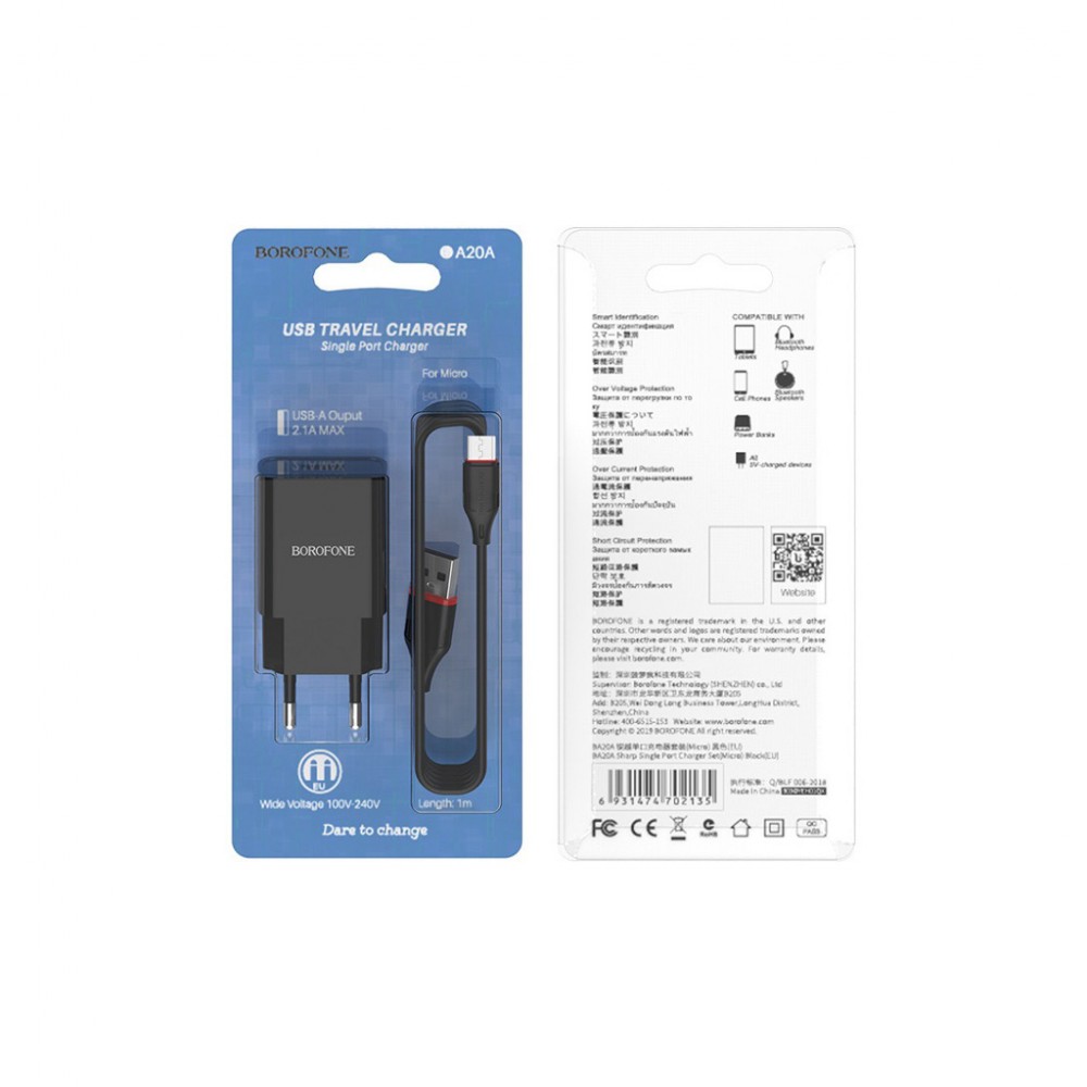 Зарядний пристрій BOROFONE BA20A Sharp USB + cable USB to Micro 5P 10.5W Black (6931474702135)