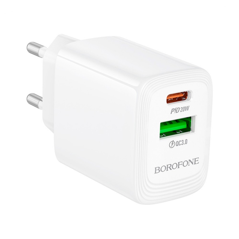 Зарядний пристрій BOROFONE BN27 Fuente 1xUSB-C PD20W + 1xUSB QC3.0 White (6941991120268)