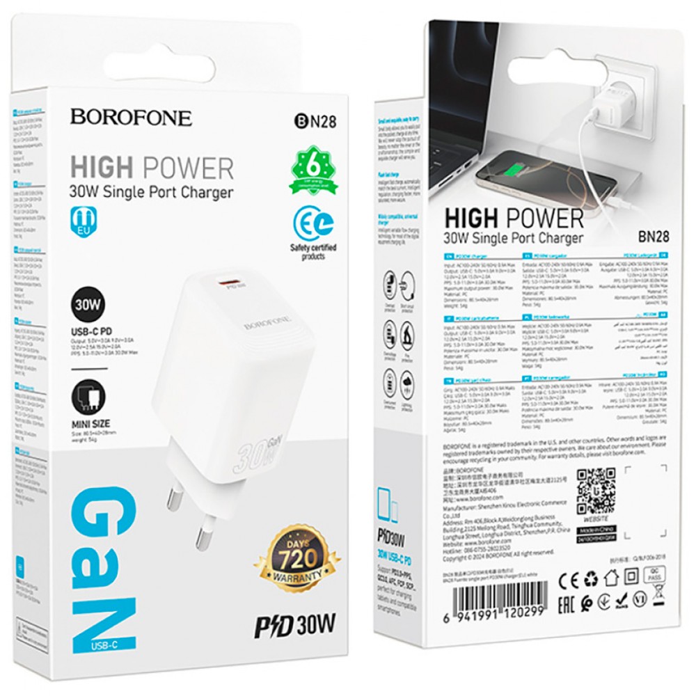 Зарядний пристрій BOROFONE BN28 Fuente USB-C PD30W White (6941991120299)