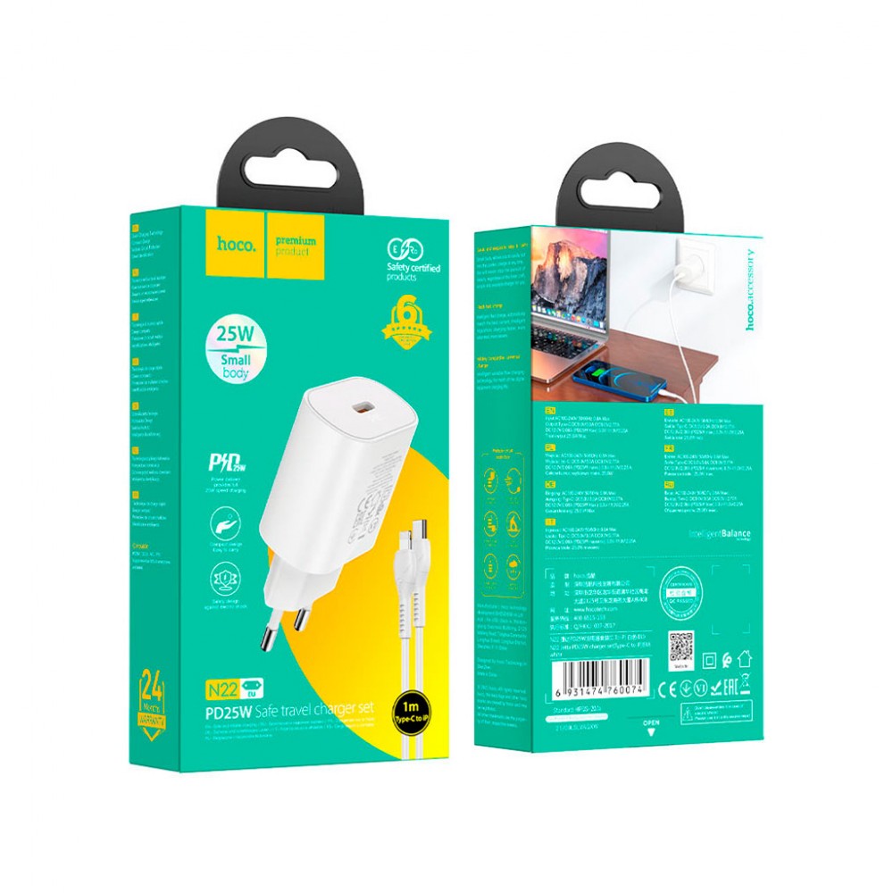 Зарядний пристрій HOCO N22 Jetta USB-C PD25W + cable USB-C to Lightning White (6931474760074)