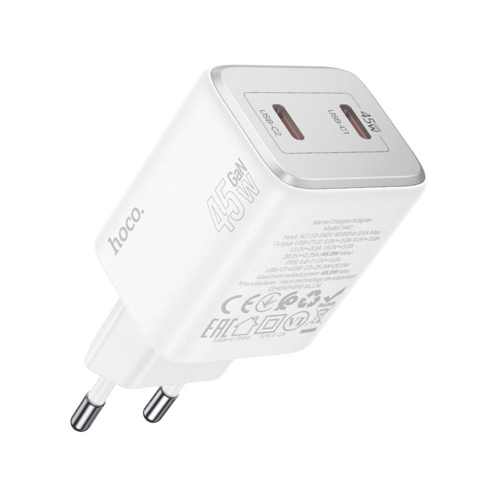 Зарядний пристрій HOCO N42 Elogiado 2xUSB-C PD45W + cable USB-C to Lightning White (6942007617116)