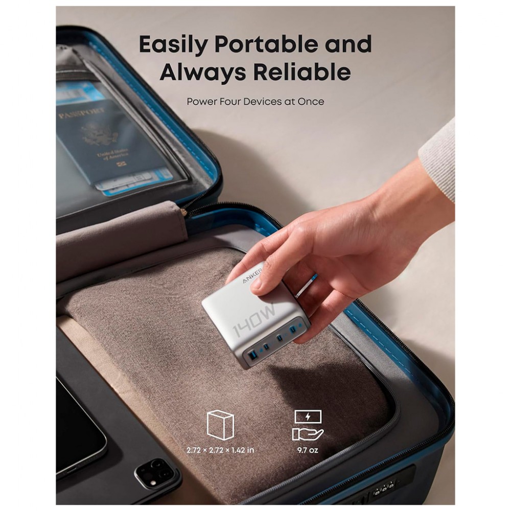 Зарядний пристрій Anker Laptop GaN 140W 3xUSB-C PD3.1 + USB-A + display + cable Silver (B2697G41)