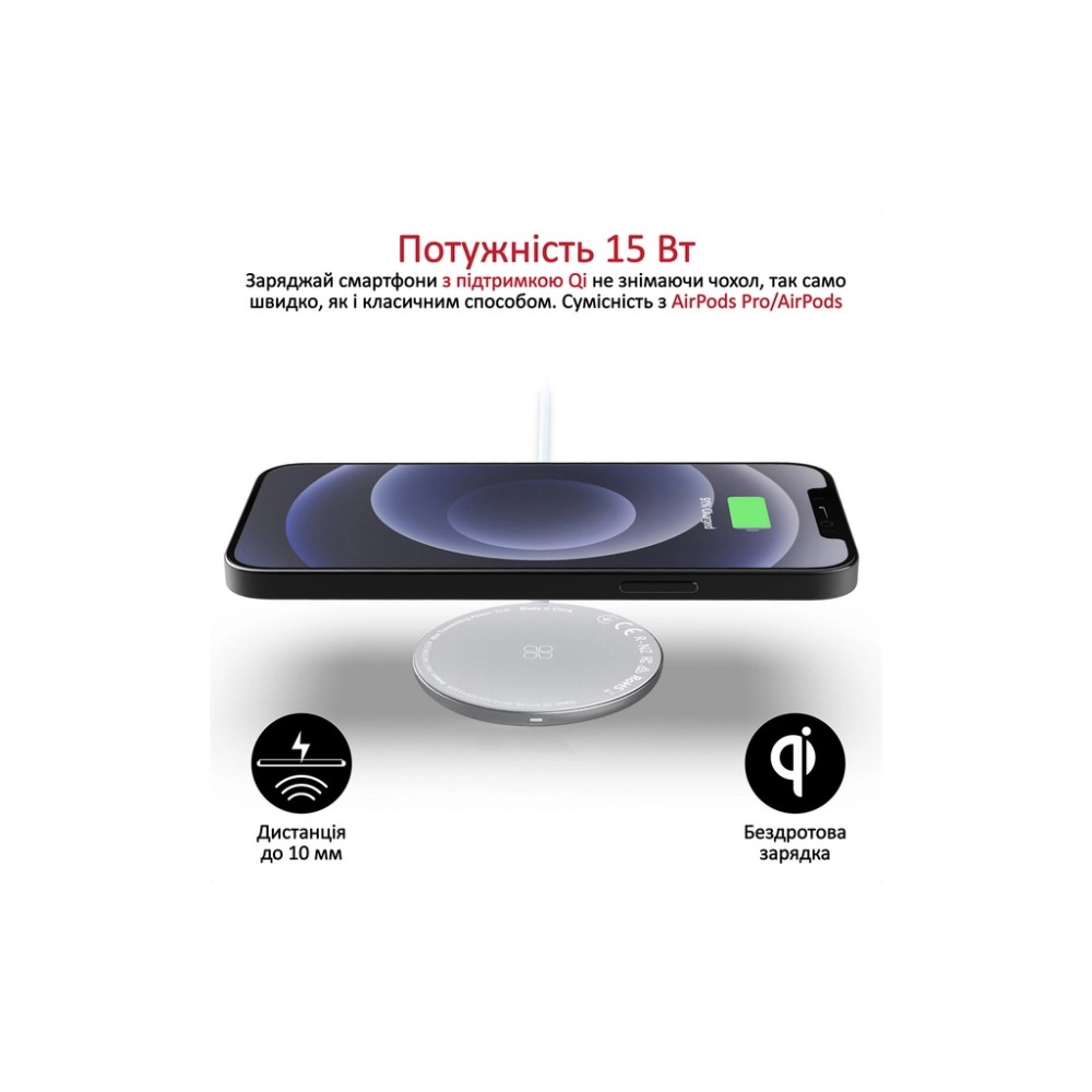Зарядний пристрій Promate wireless charger auramag-15w silver (auramag-15w.silver)