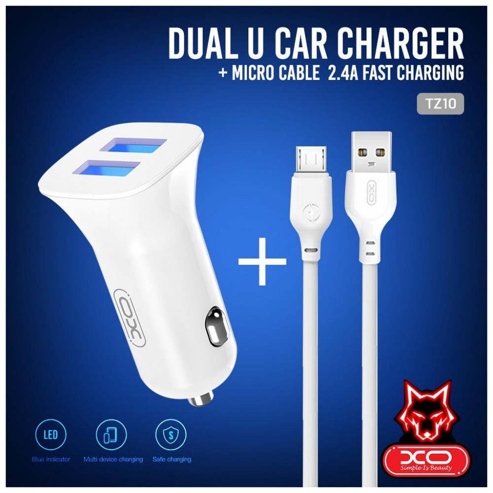 Зарядний пристрій XO 2xUSB 2.4A + cable USB to Micro 5P white (TZ10-M-WH)