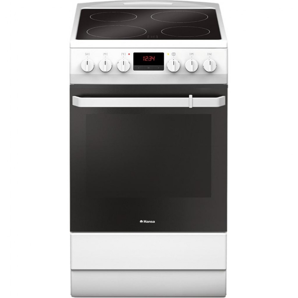 Плита Hansa FCCW 58277 (FCCW58277) для щоденного приготування смачних і улюблених страв оснащена склокерамічною варильною поверхнею і багатофункціональною електричною духовкою. Для управління всіх нагрівальних елементів на панелі управління розміщені поворотні ручки регулювання потужності нагріву. Також тут встановлено великий цифровий дисплей, який відображає поточний час або час до закінчення приготування. Електронний програматор з кнопковим управлінням дозволяє запрограмувати тривалість приготування страв в духовій шафі, а також автоматично відключить нагрів, коли закінчиться заданий час, і подасть звуковий сигнал.