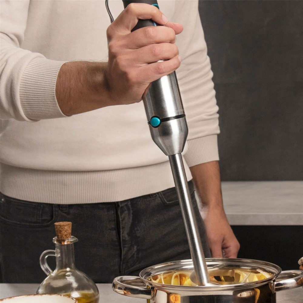 занурювальний, 1200 Вт, Ємність склянки - 0.8 л, з подрібнювачем, Ємність міні-подрібнювача - 600 мл, кількість швидкостей - плавне регулювання, турборежим - так, 480 х 68 х 68 мм, 0.95 кг, сріблястий, чорний