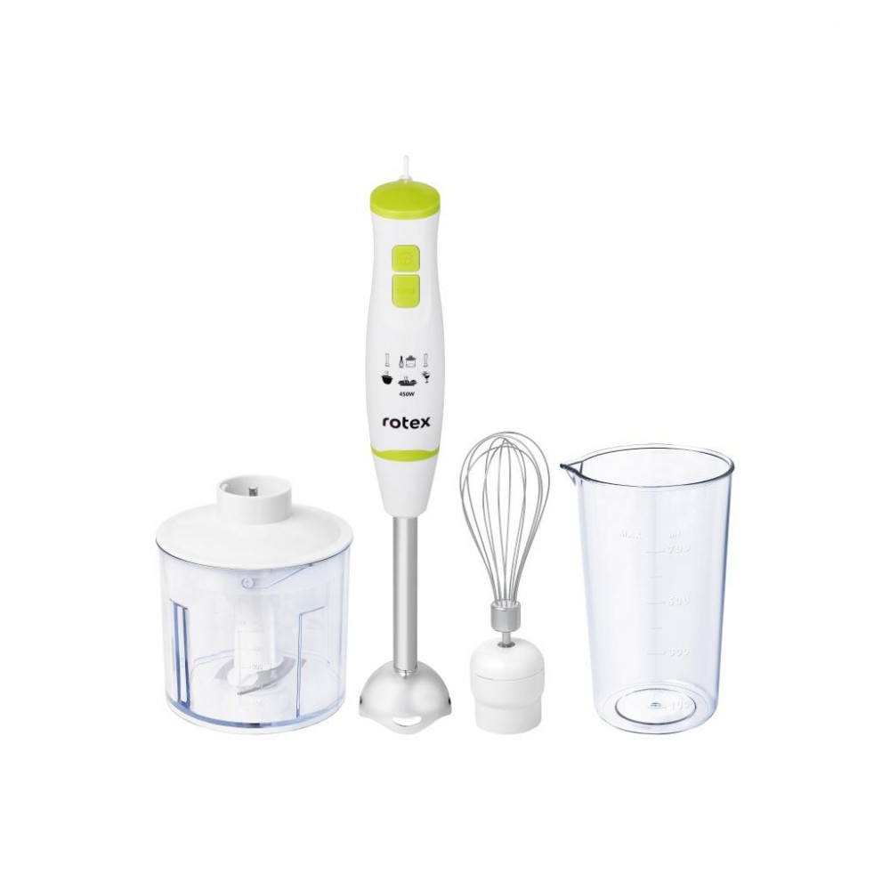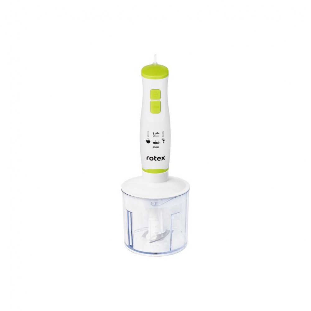 занурювальний, 450 Вт, з подрібнювачем, Ємність міні-подрібнювача - 500 мл, 10 000 об/хв, кількість швидкостей - 2, 220 х 210 х 120 мм, 0.8 кг, білий